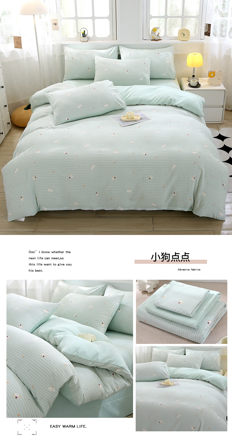 商品名称:织写 2025新款A类双层纱针织棉四件套床单四件套床单四件套小清新四件套 小狗点点