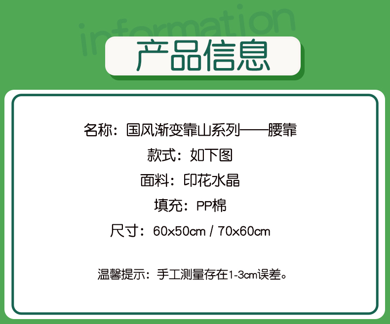 商品名称:(总)仟亿莱 2025新款国风渐变靠山系列腰靠
