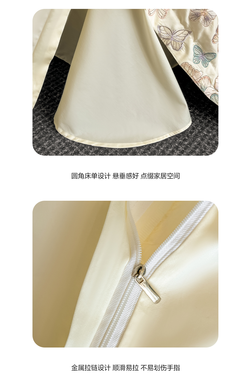 商品名称:欧乐蒂 2025新款A类亲肤棉刺绣四件套-蝶舞 蝶舞-柔白