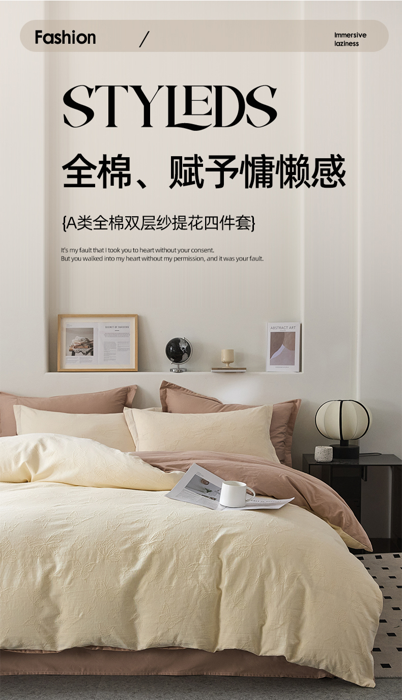 商品名称:(总)七七家纺 新款提花双层纱全棉四件套