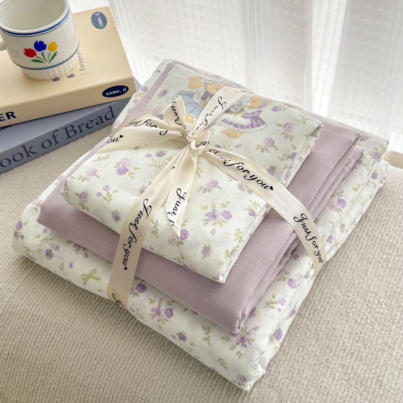 2025新款双层纱印花卡通四件套-叠拍 甜茶兔