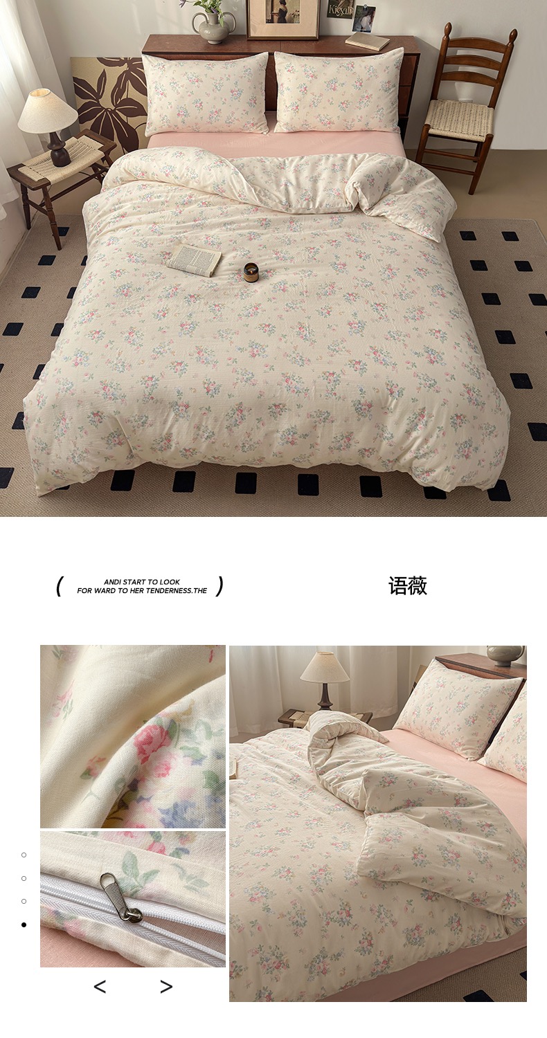 商品名称:典曼家纺 2025新款双层纱小清新印花四件套-叠拍 语薇