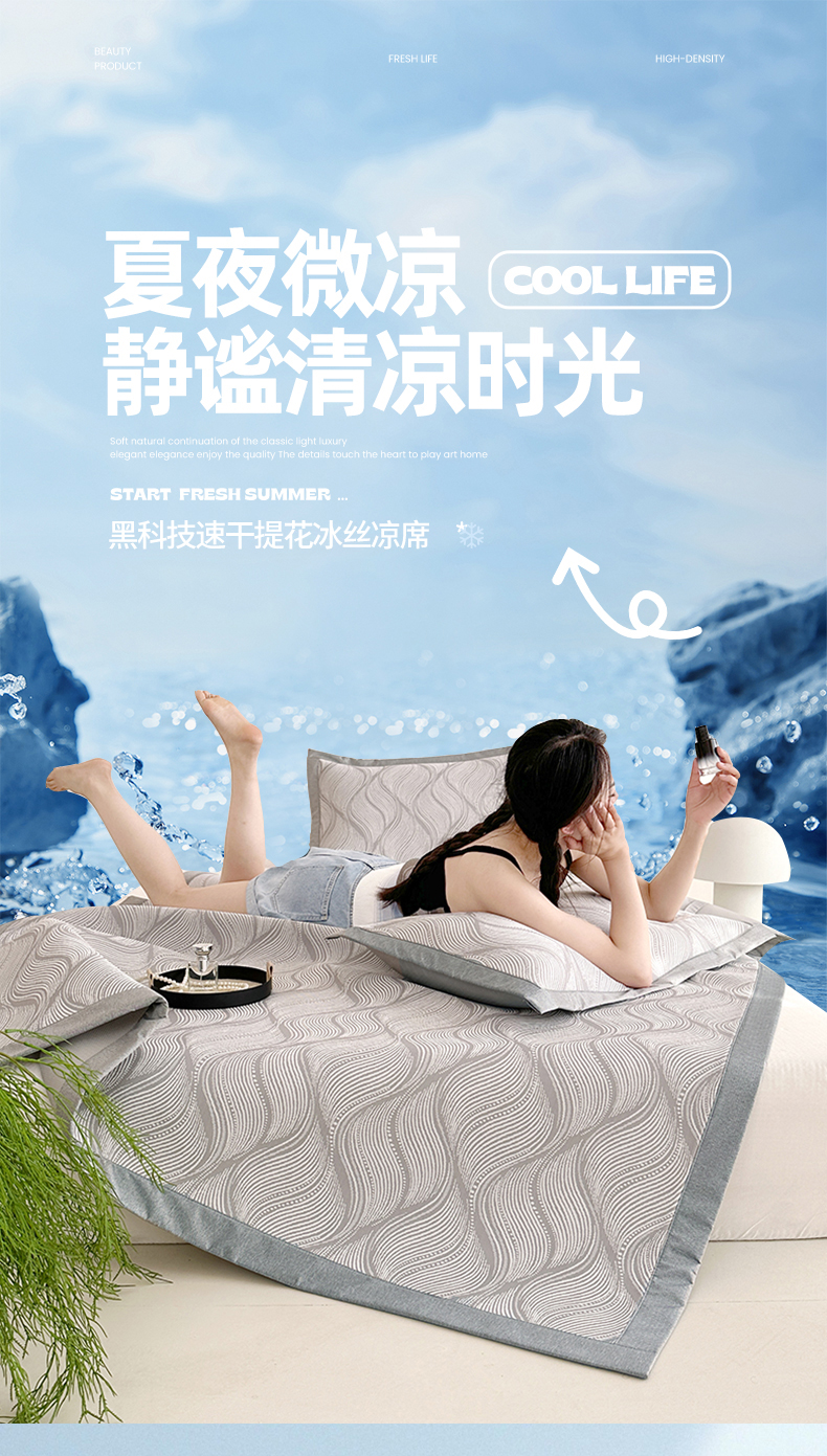 网客家纺 2025新款高分子PE(聚乙烯)提花凉感软席 夏梦-咖