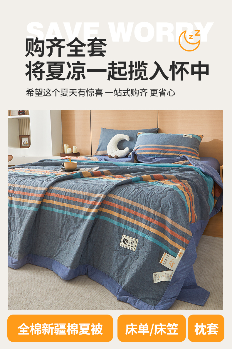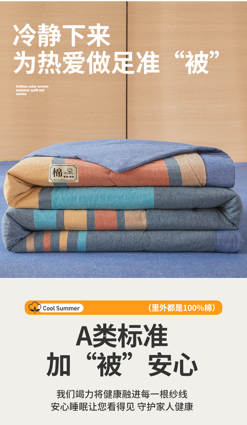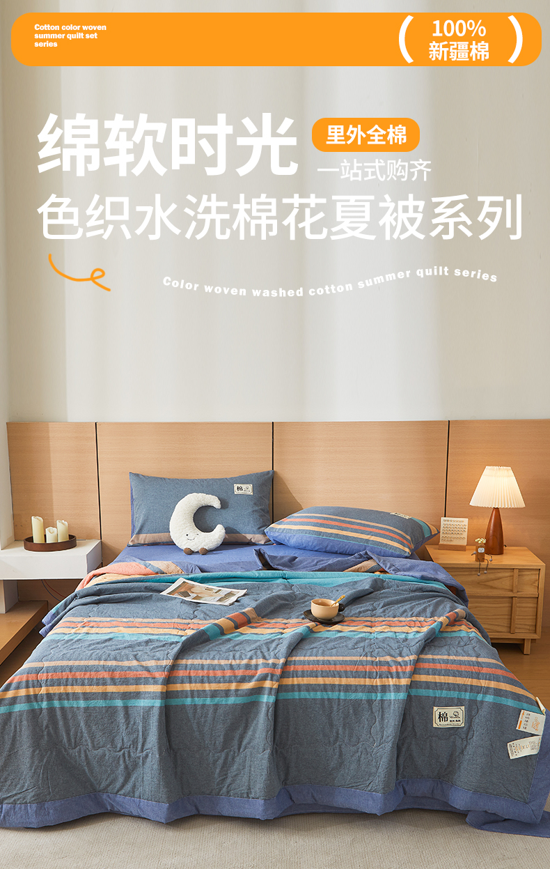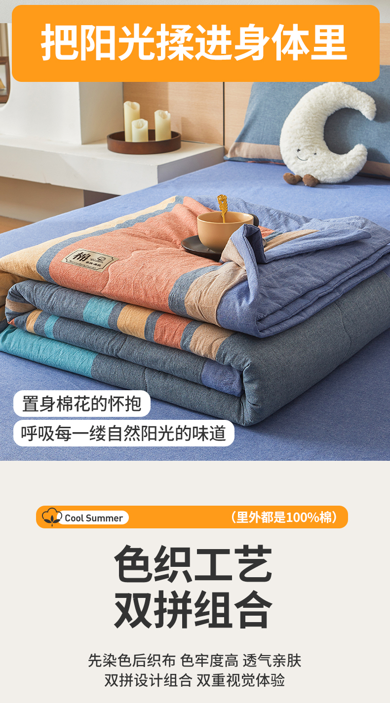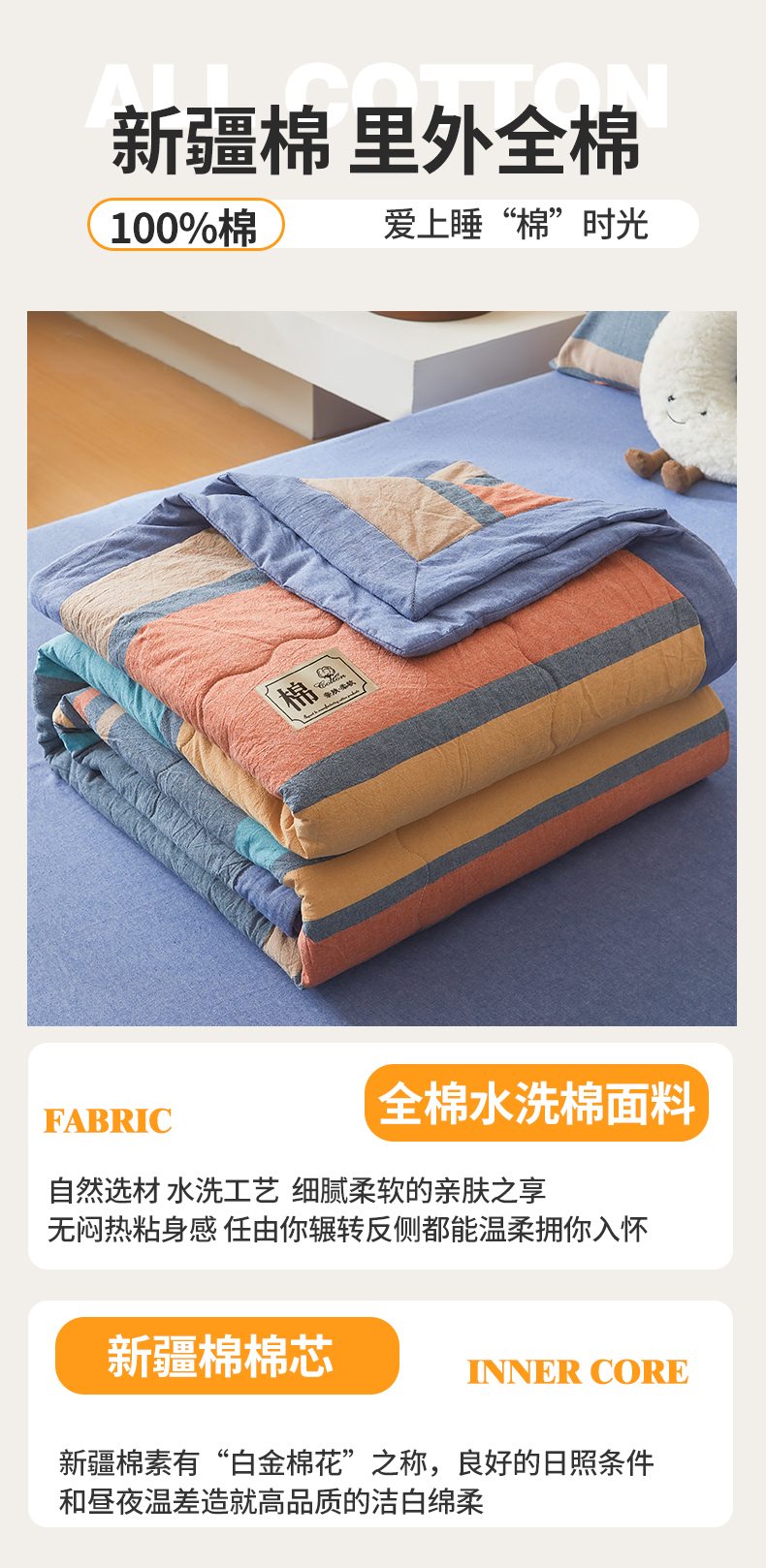 • 91家纺网 家纺一手货源 找家纺 招财星家纺 2025新款新疆棉花被夏被100%里外全棉棉花夏被无印风全棉色织水洗棉夏凉被空调被春秋被单人可机洗 京都
