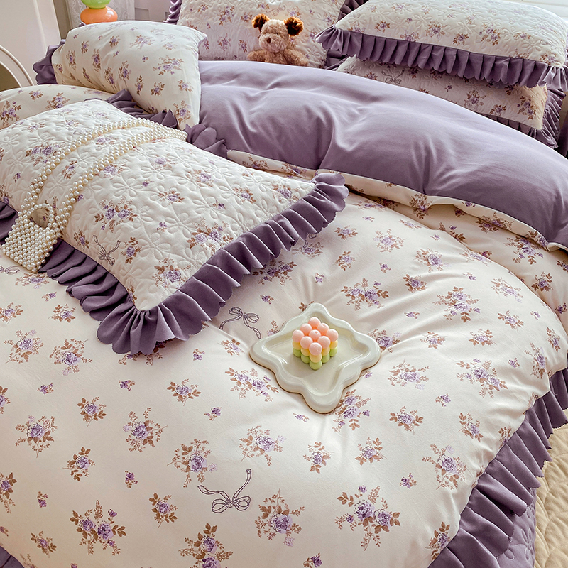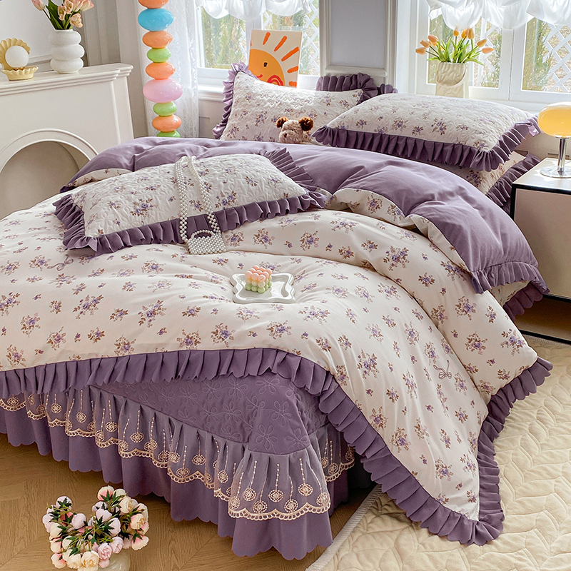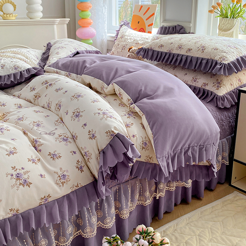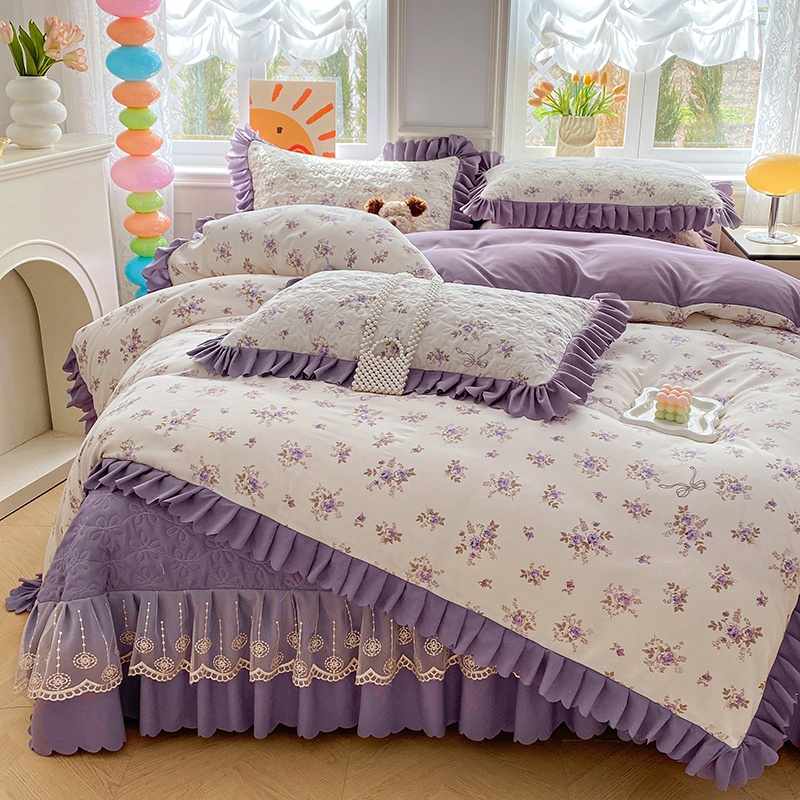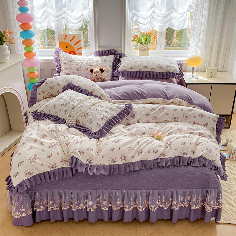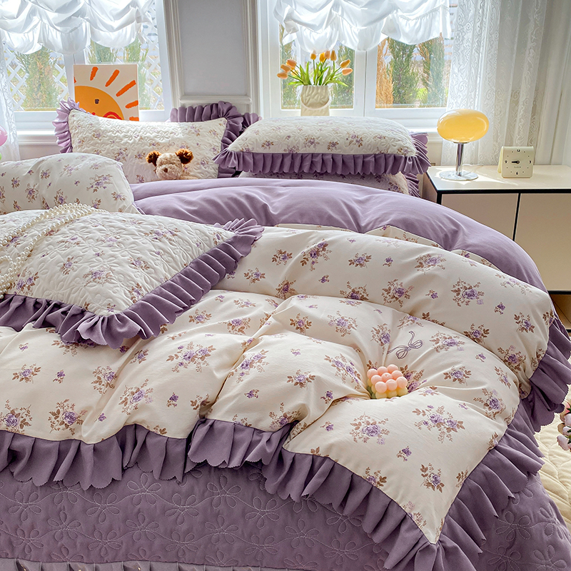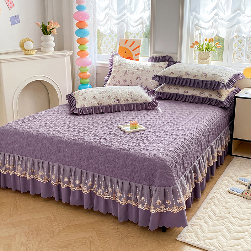 提花大世界 2025直播热款A类针织棉双层纱夹棉床盖床裙花边单件三件四件套 幽香私语