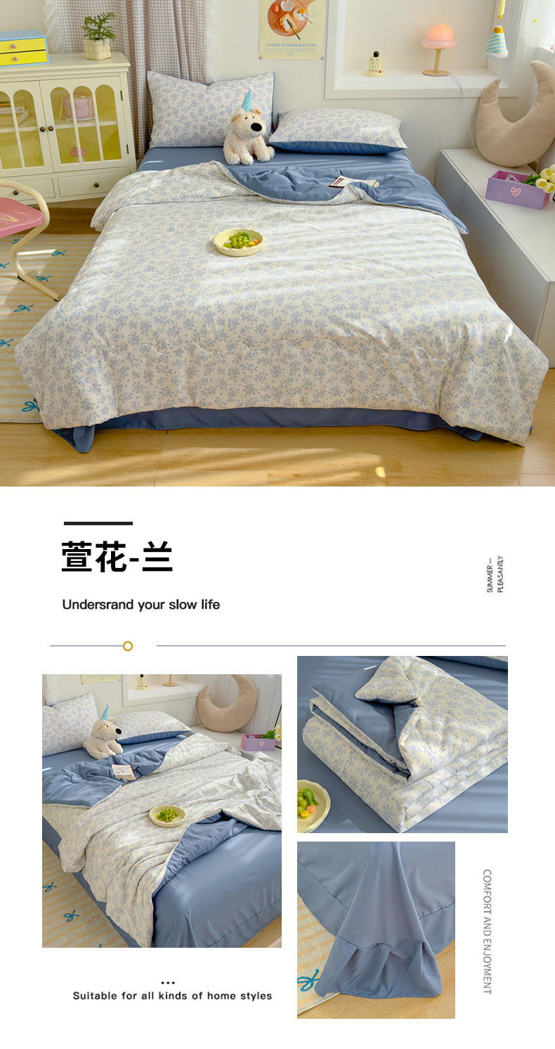 弗苓家纺 2025 A类有氧针织双层纱夏被四件套直播爆款 萱花-兰