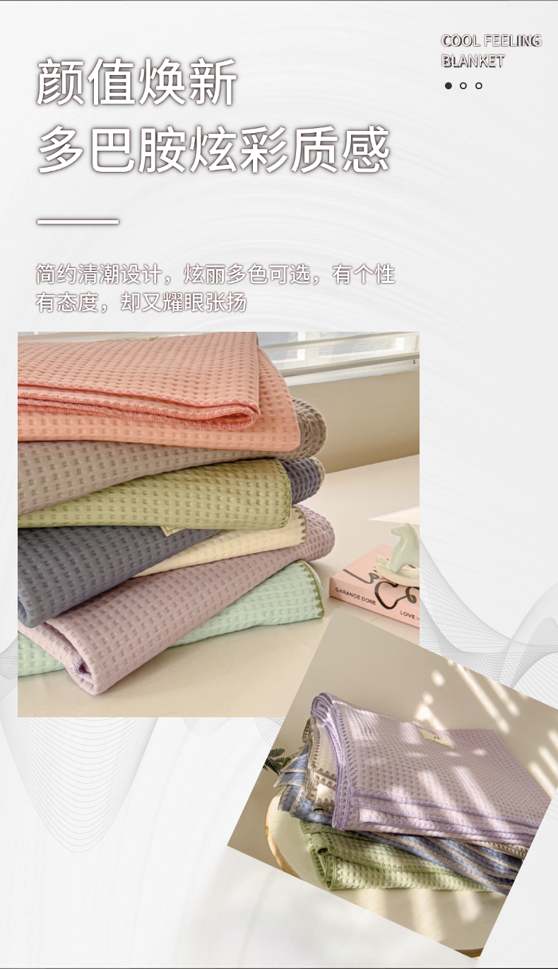 (总)十九色 2025新款全尺寸三角针盖毯夏被华夫格双面冷感夏被毯,淡绛红,海军蓝,海天蓝,幻影灰,抹茶绿,牵牛紫,象牙白