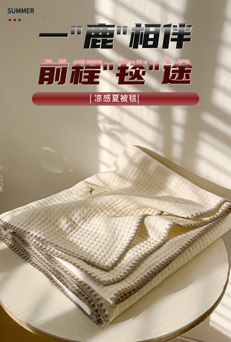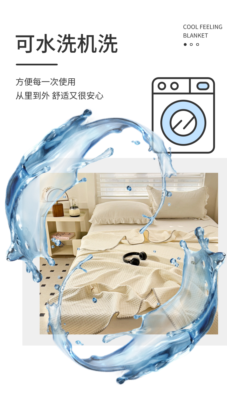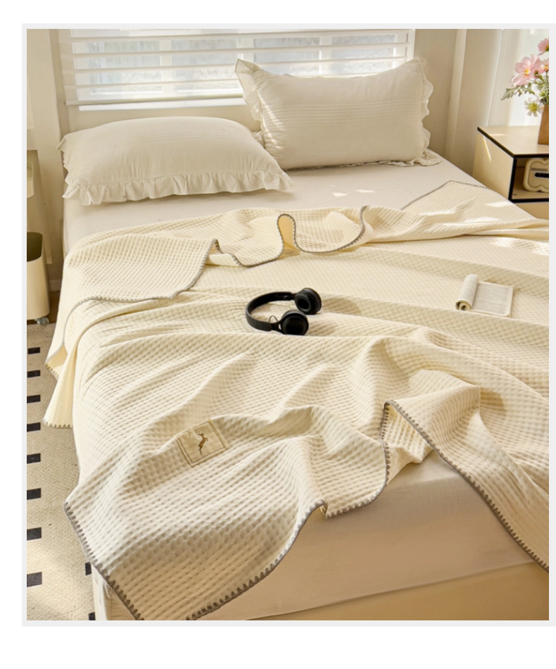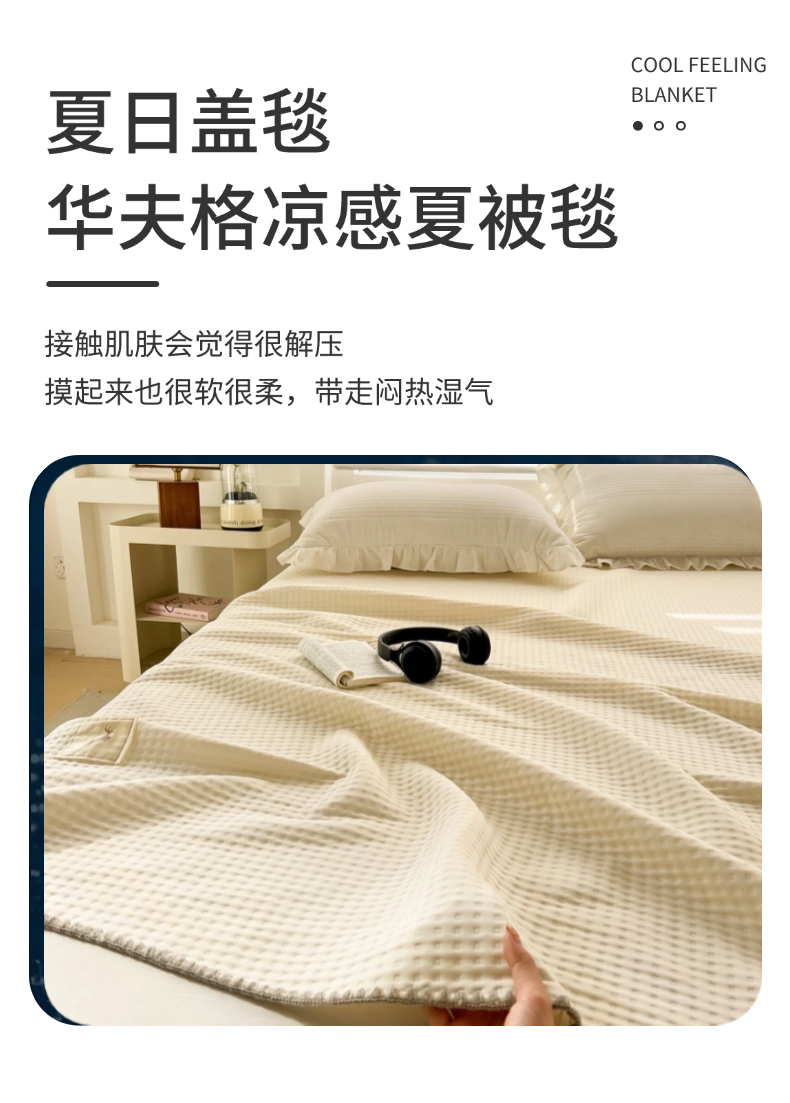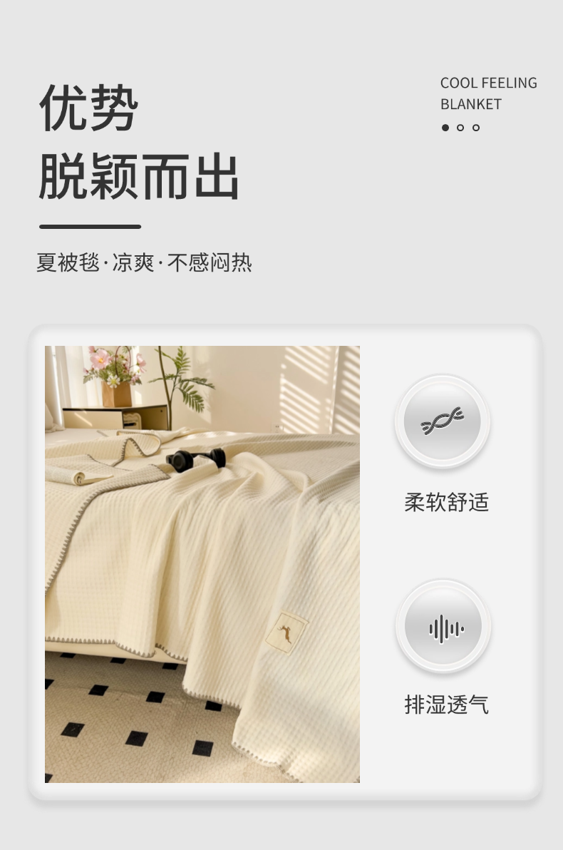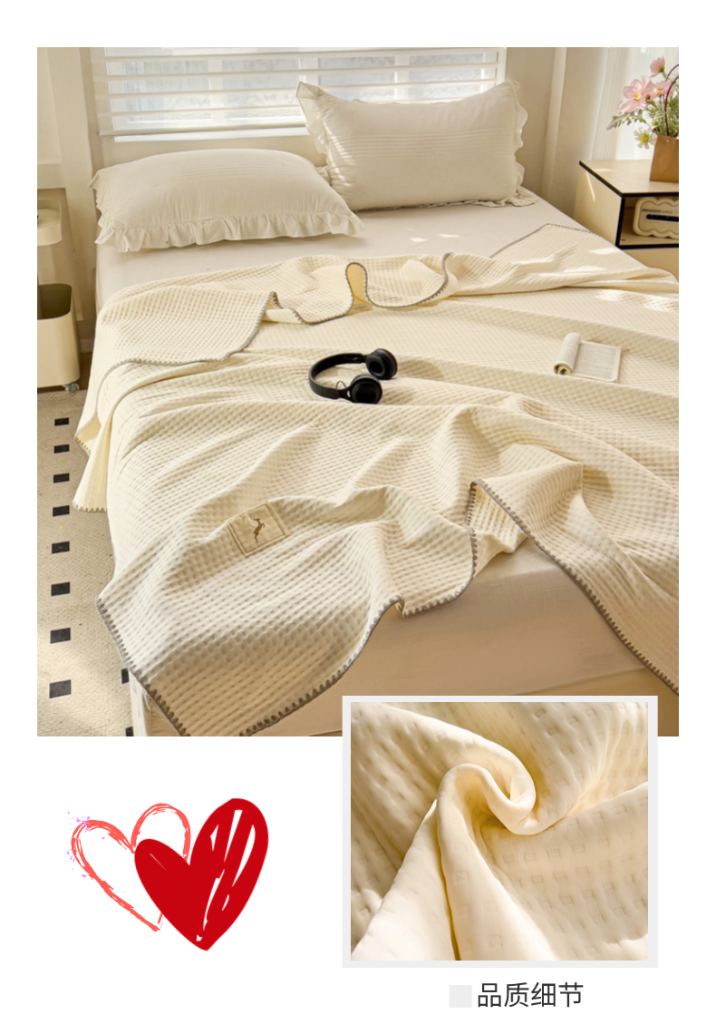 十九色 2025新款全尺寸三角针盖毯夏被华夫格双面冷感夏被毯 象牙白