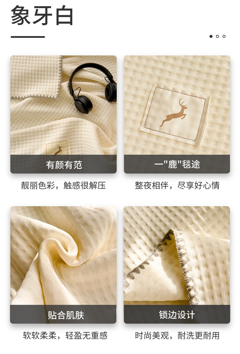 商品名称:十九色 2025新款全尺寸三角针盖毯夏被华夫格双面冷感夏被毯 象牙白