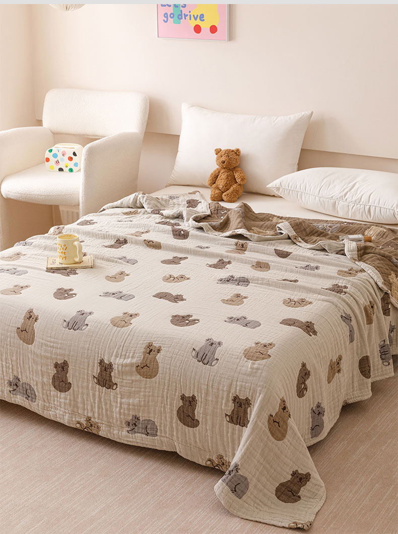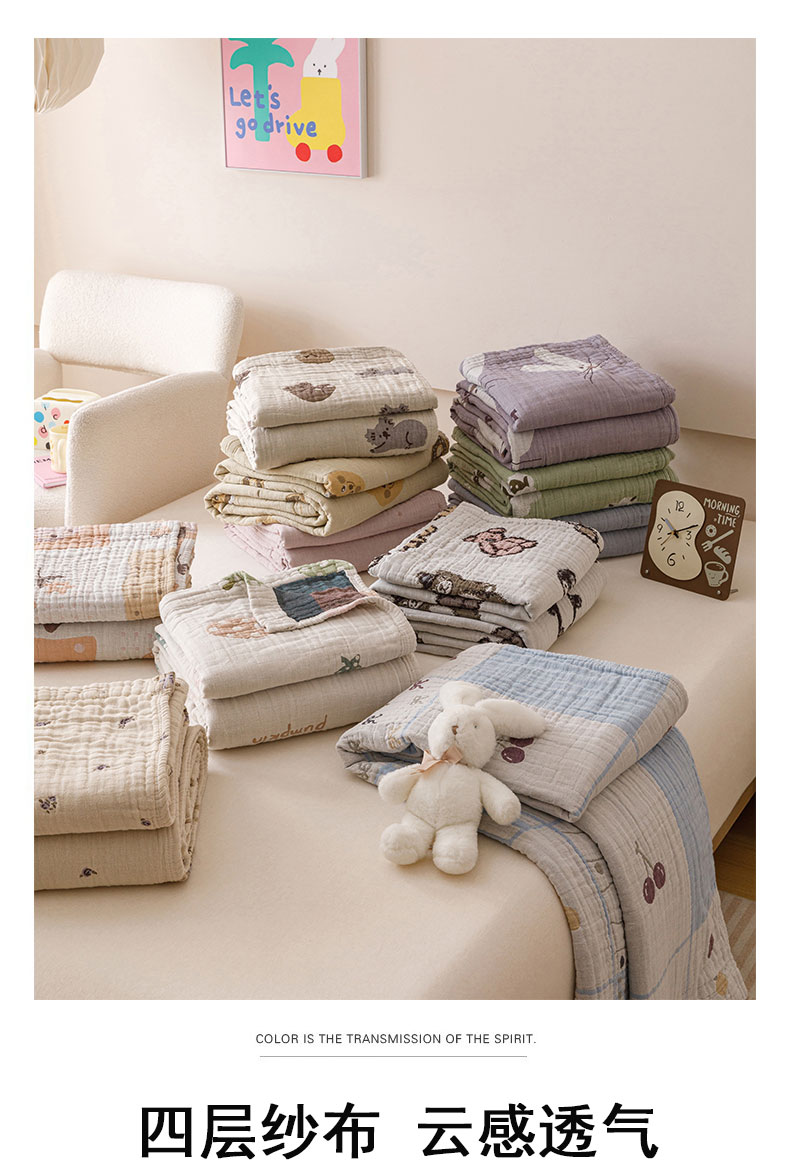 (总)麻依 2025新款四层全棉纱布毯盖毯毛巾被子被芯,白小兔,布偶熊,格子熊,考拉宝宝,咩咩羊,平安果,软萌小狗,甜点熊,甜甜圈,小猫崽,熊仔,总动员,KT日记