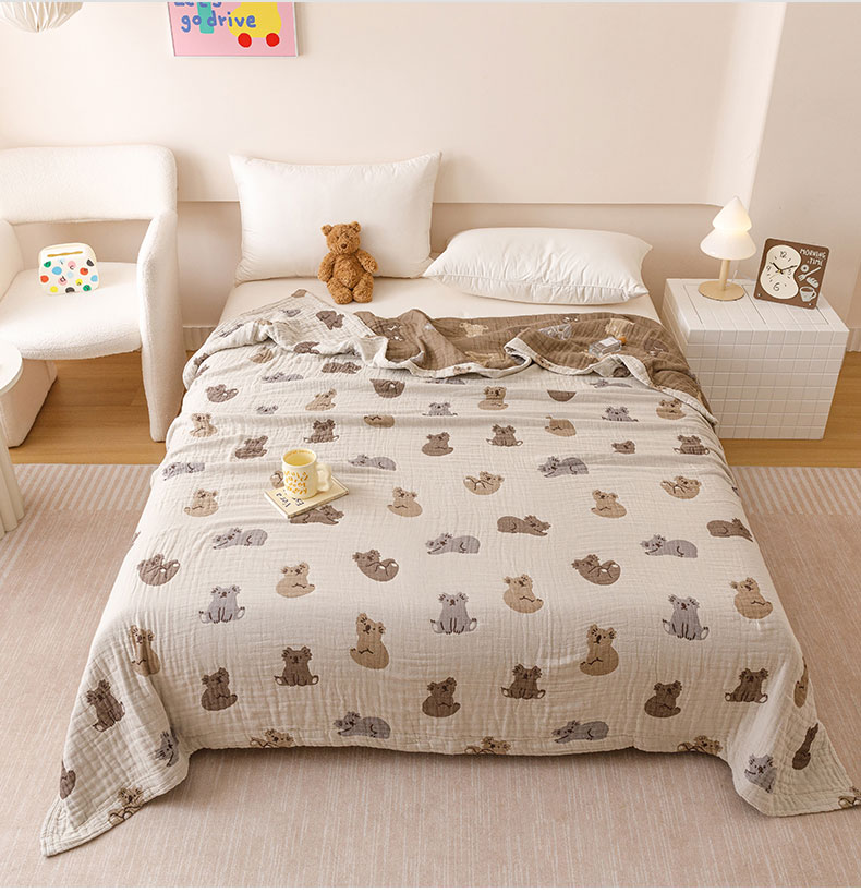 商品名称:麻依 2025新款四层全棉纱布毯盖毯毛巾被子被芯 考拉宝宝
