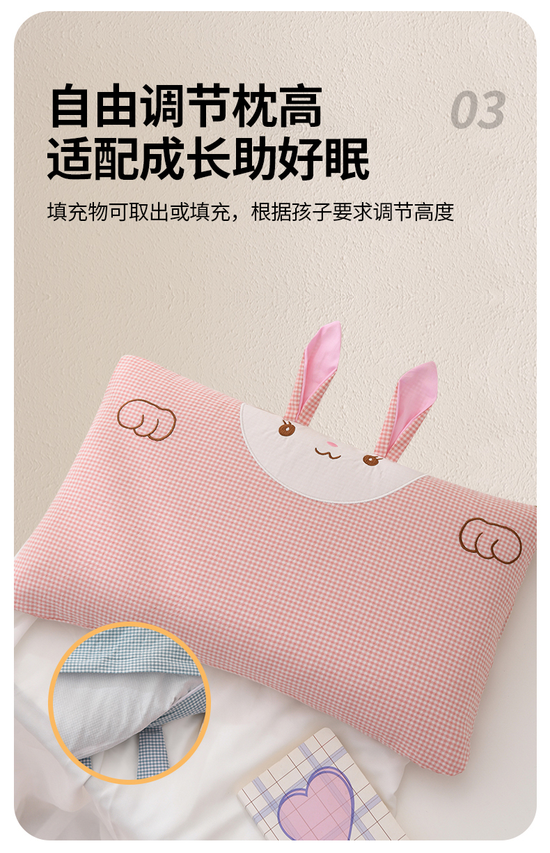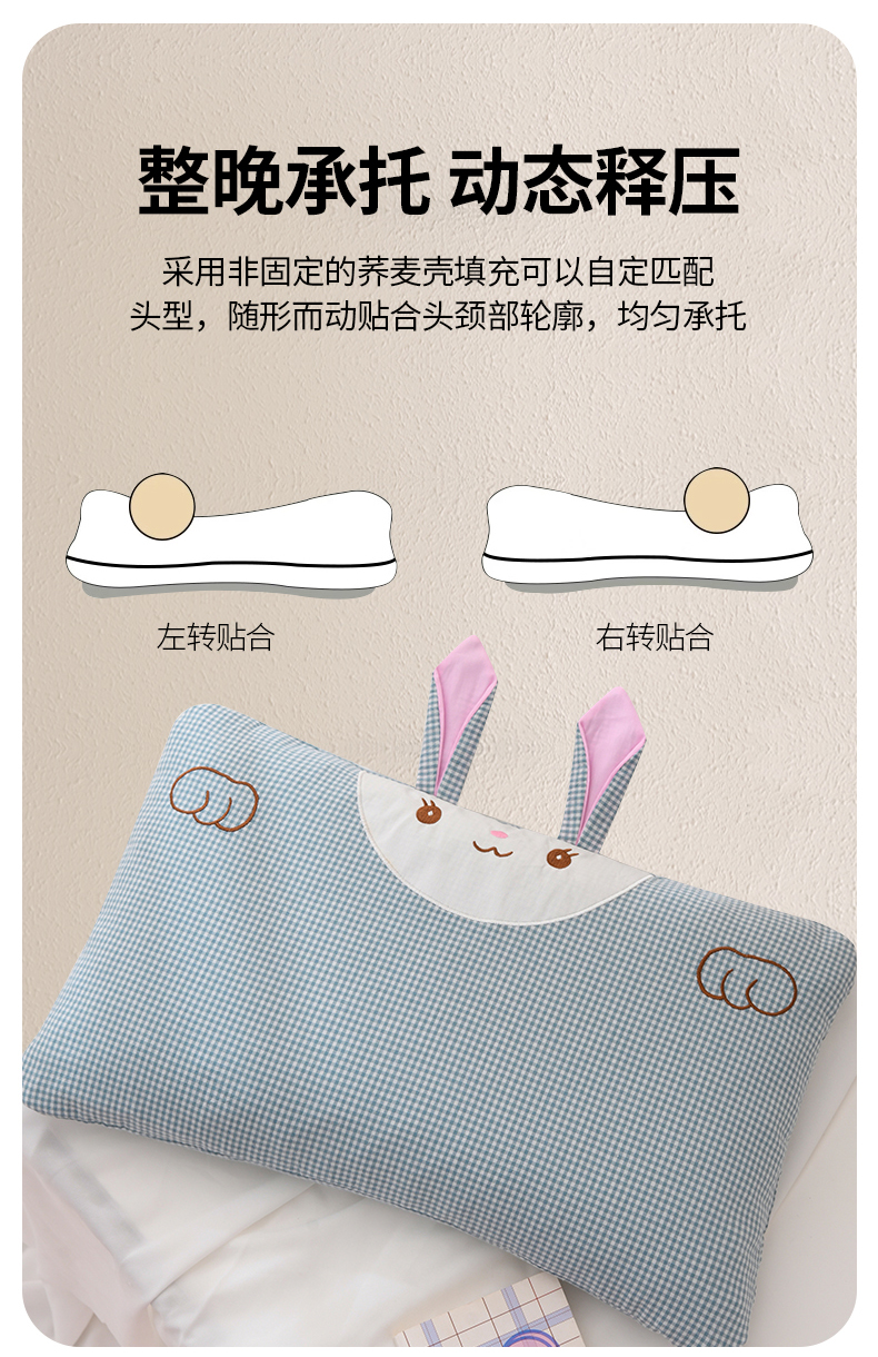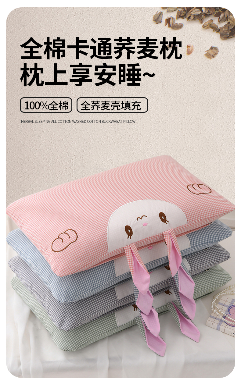 商品名称:(总)2025新款荞麦枕卡通水洗棉全棉小兔兔儿童学生枕芯枕头