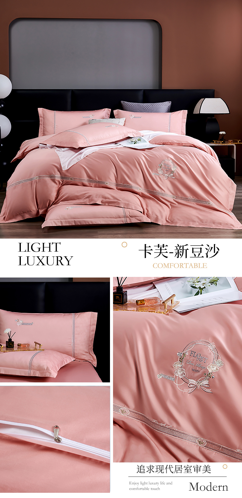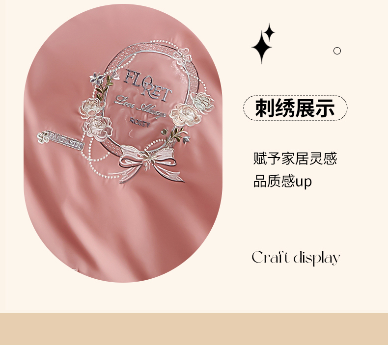 商品名称:2025新款120S60支双股贡缎长绒棉刺绣花四件套纯棉全棉100%棉轻奢时尚 卡芙-新豆沙