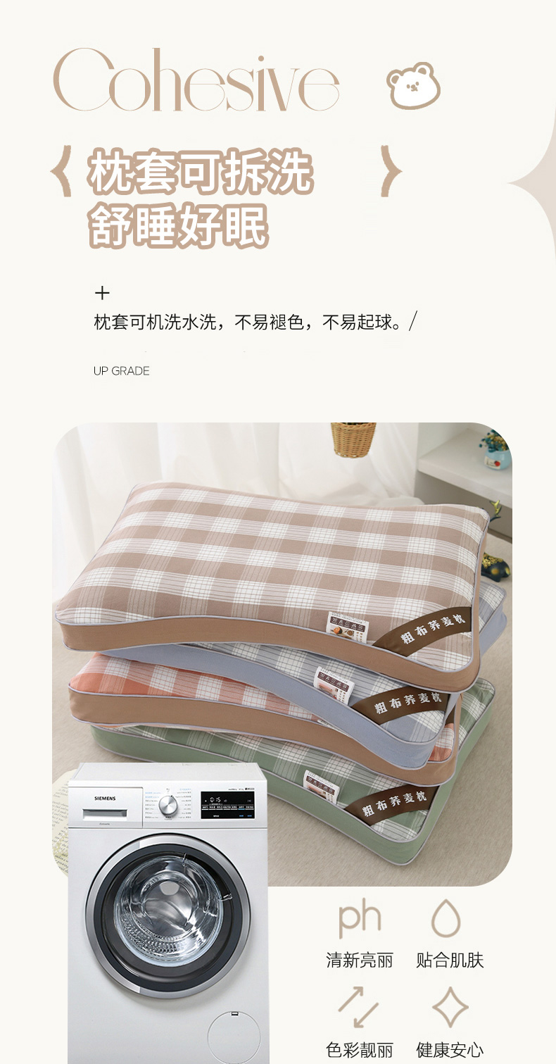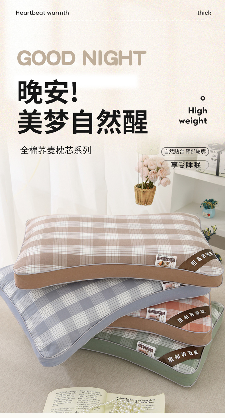 商品名称:(总)芯洲 2025新款全棉荞麦枕简约格子韩式护颈老粗布成人枕头枕芯