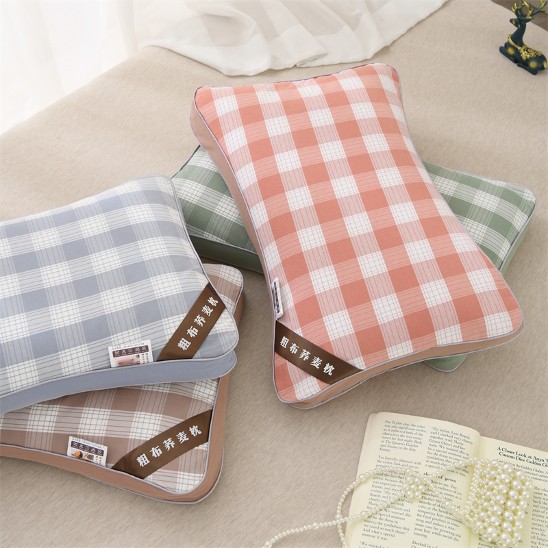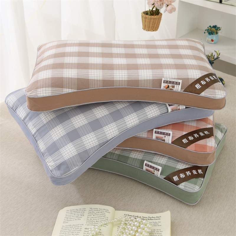 (总)芯洲 2025新款全棉荞麦枕简约格子韩式护颈老粗布成人枕头枕芯