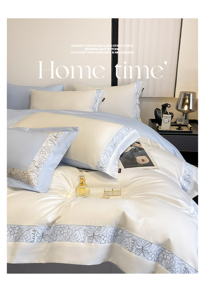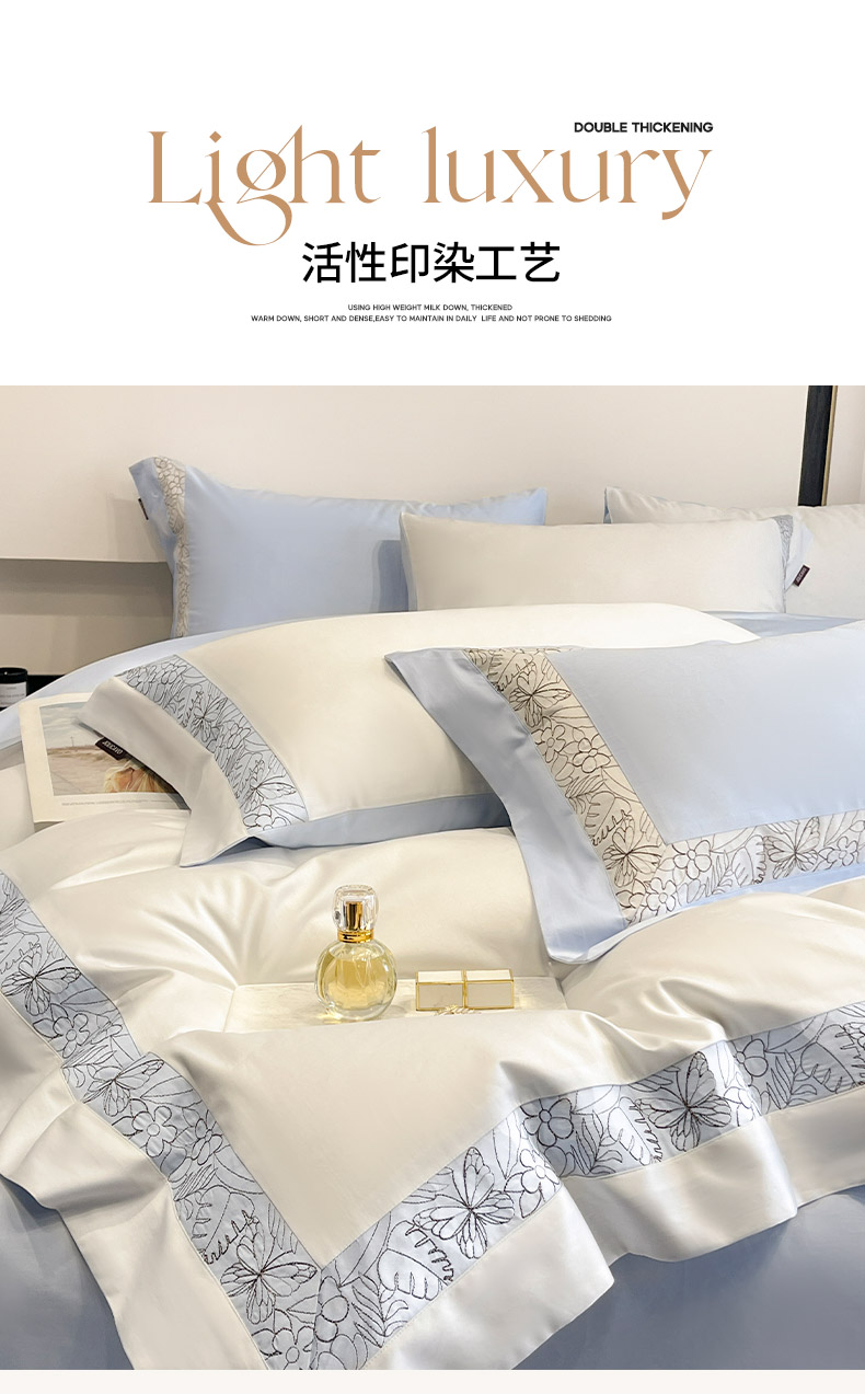 商品名称:2025新款轻奢A类母婴级长绒棉全工艺刺绣四件套纯棉全棉高端春夏季爆款床上用品 诺兰-白蓝