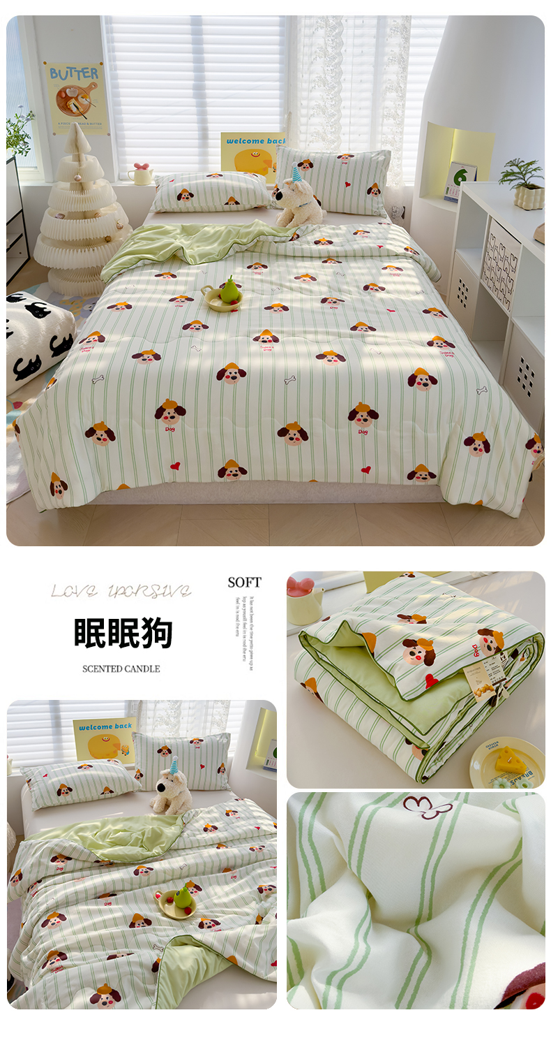 弗苓家纺 2025新款A类皱皱纱印花夏被 眠眠狗