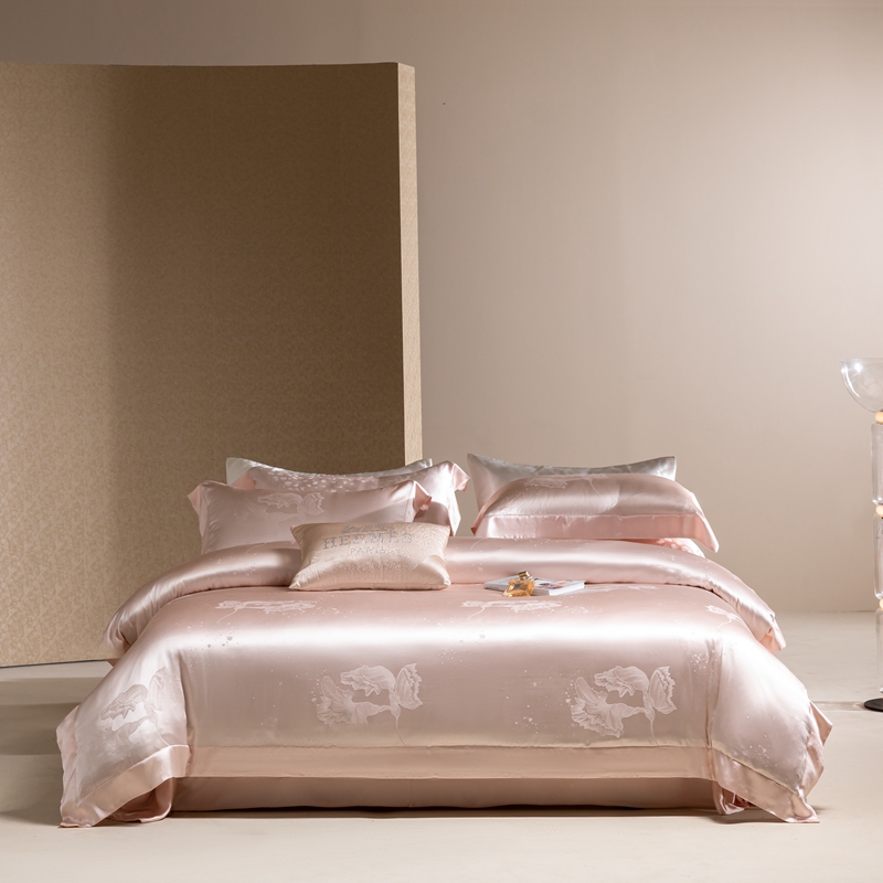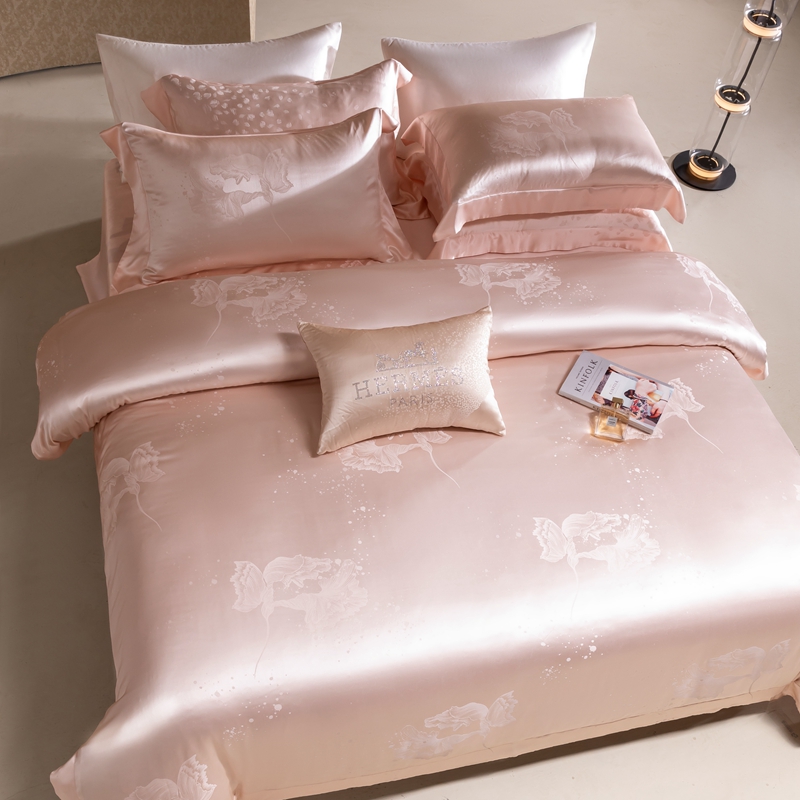 商品名称:晋瑞 红顶鹅绒馆 2025真丝天丝大提花四件套 夏奈花园