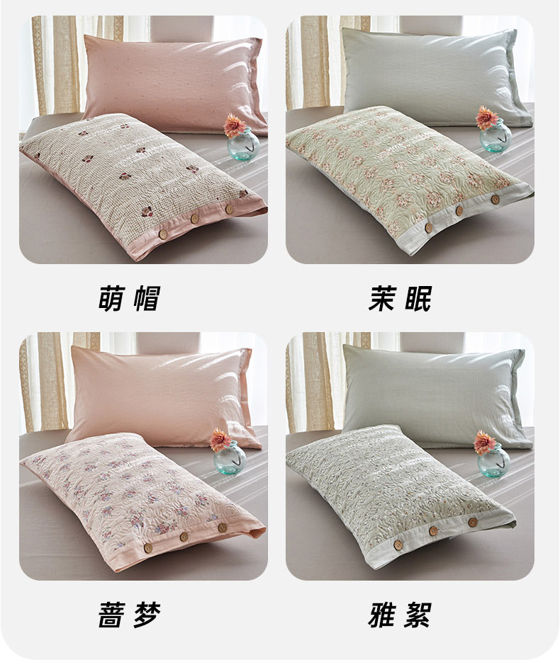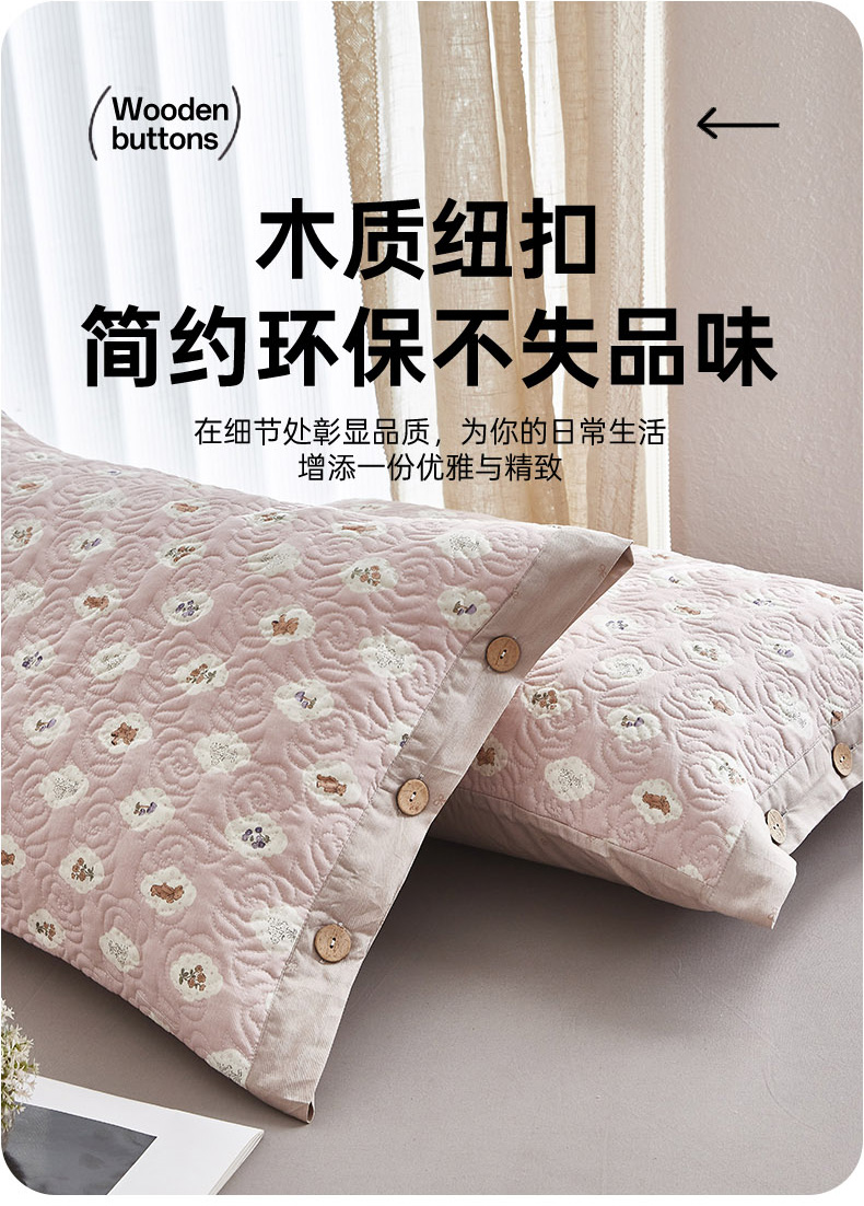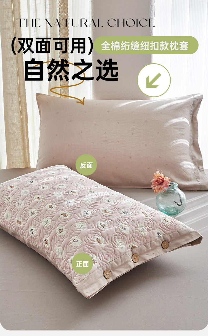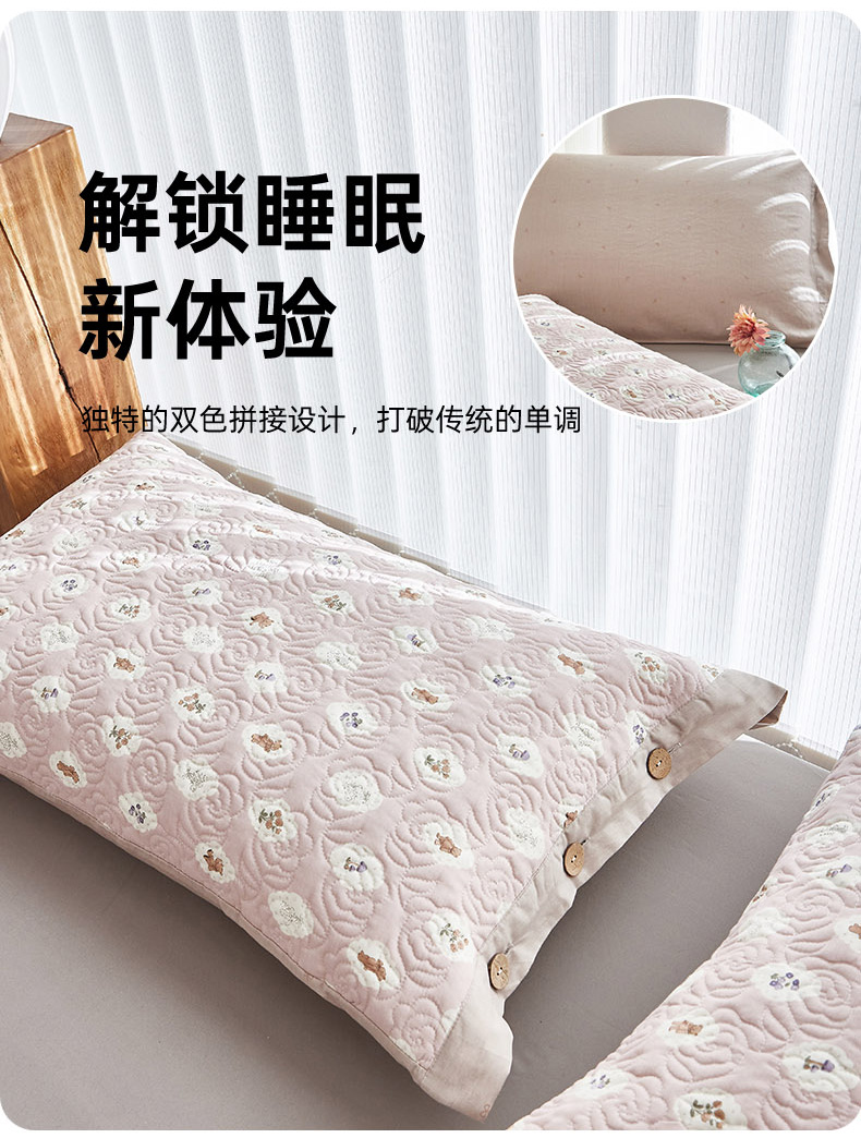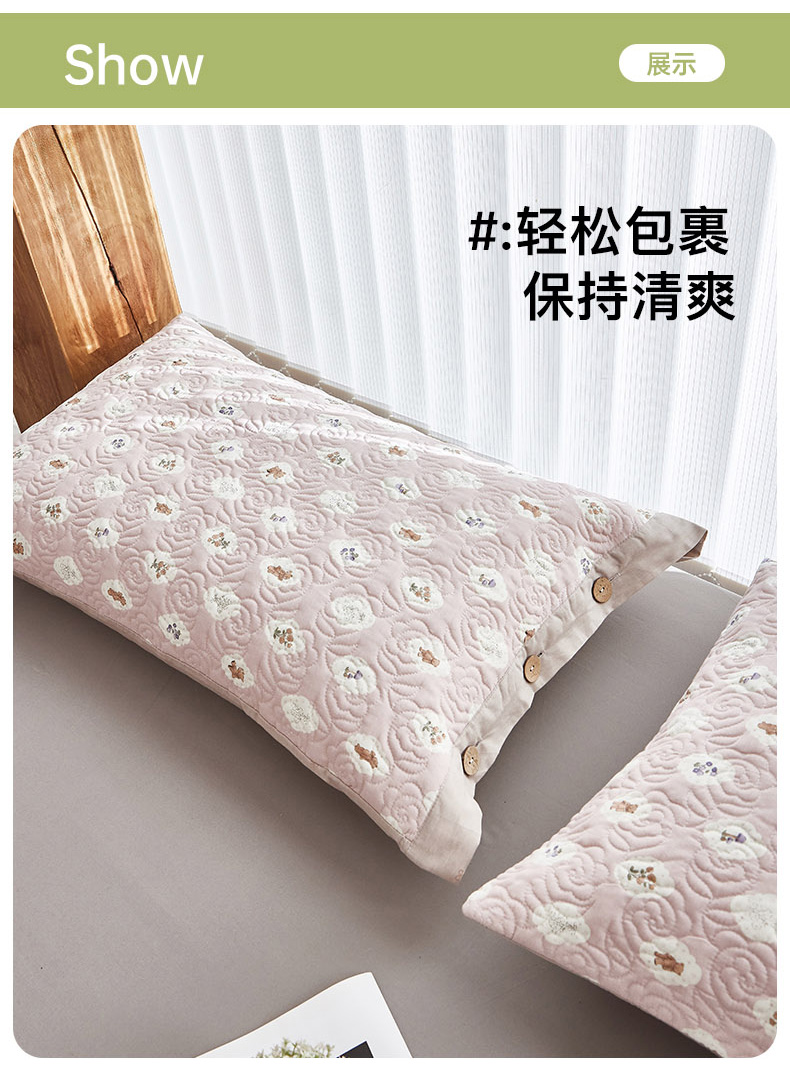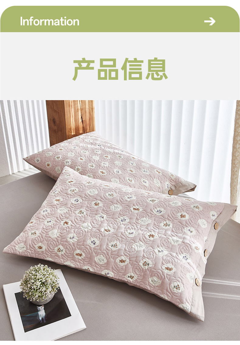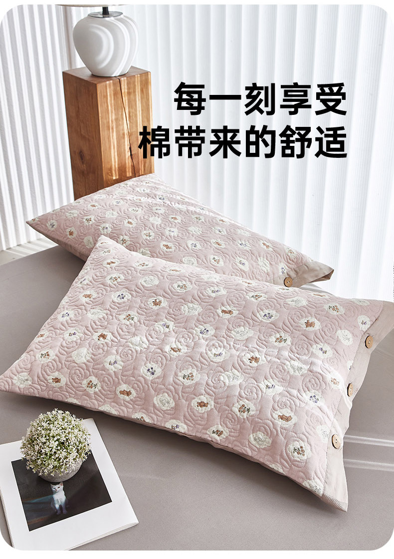 商品名称:爱港家纺 2025新款全棉绗缝夹棉双面枕套 枕头套 四季款 隔汗隔脏 萌朵