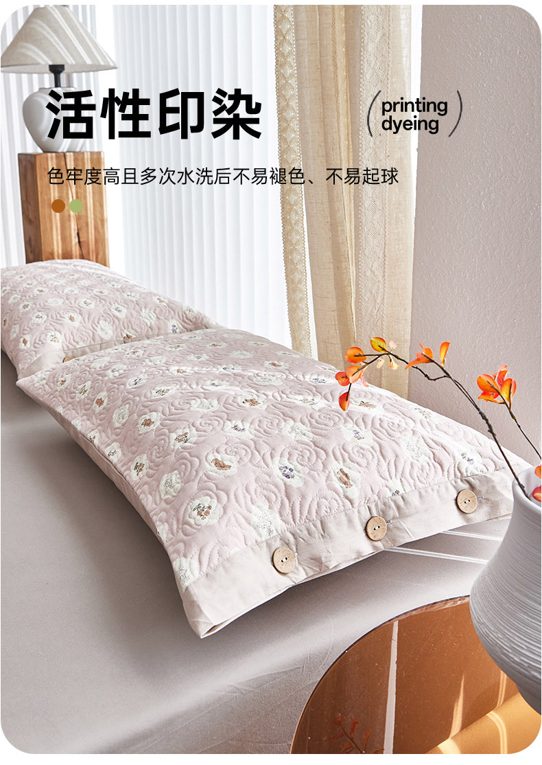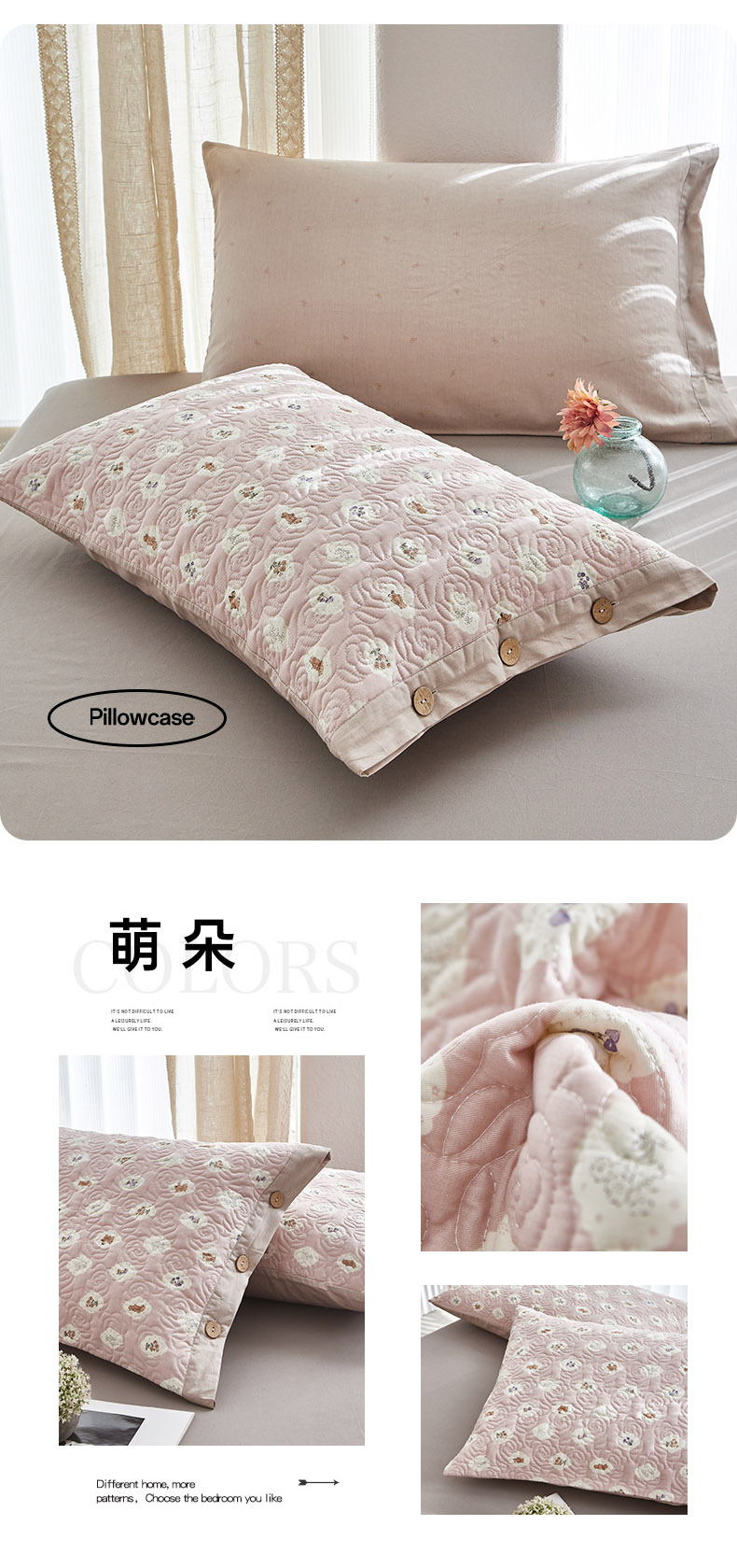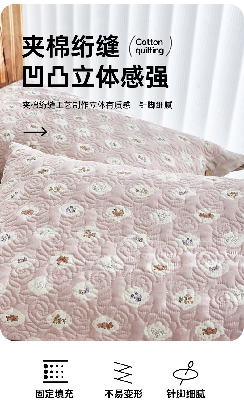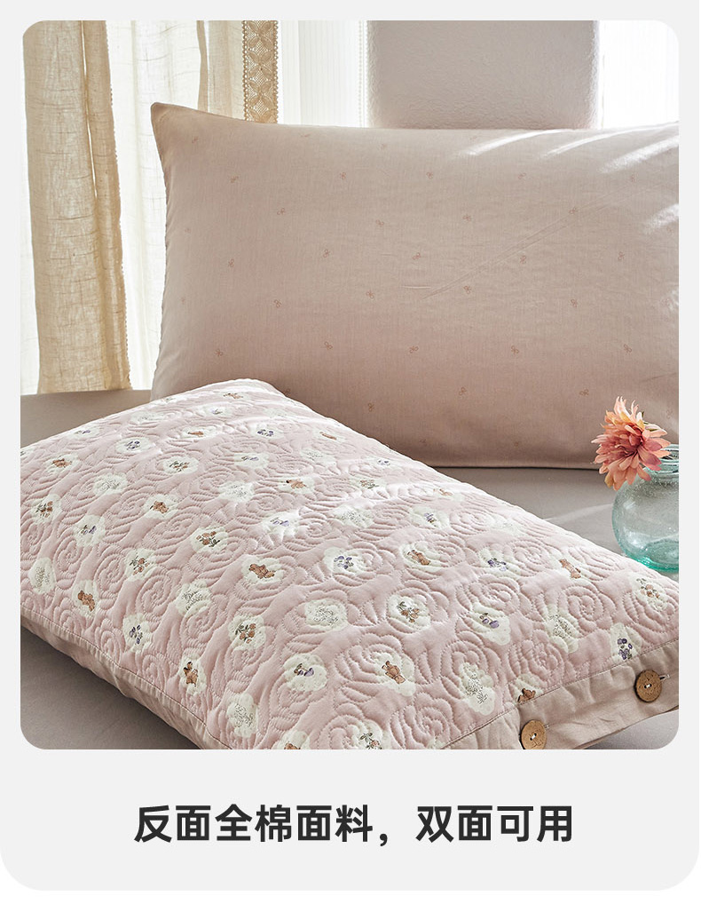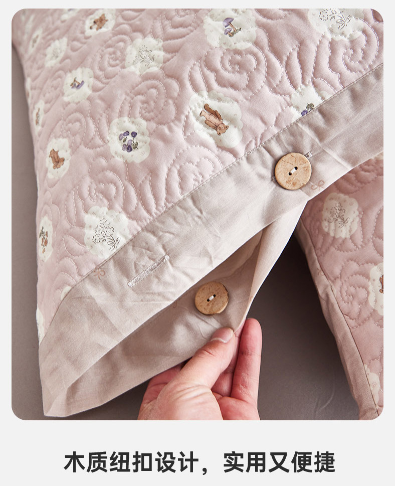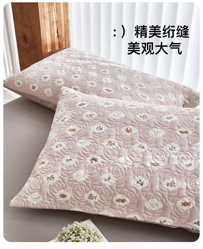爱港家纺 2025新款全棉绗缝夹棉双面枕套 枕头套 四季款 隔汗隔脏 萌朵