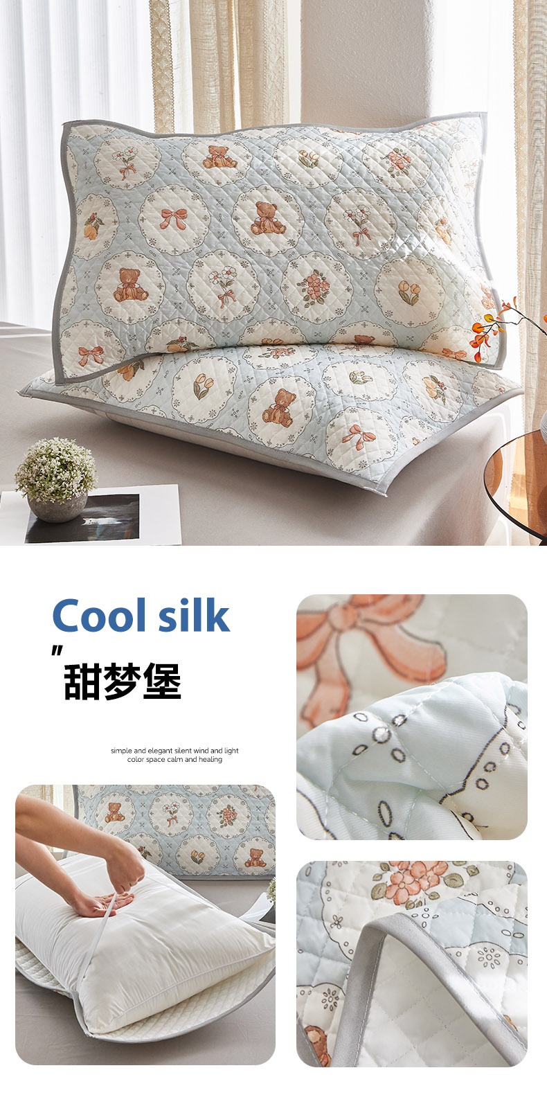爱港家纺 2025新款夏季凉感丝绗缝夹棉绑带款枕巾 枕头巾 隔汗 隔脏 甜梦堡