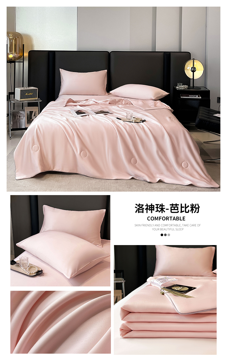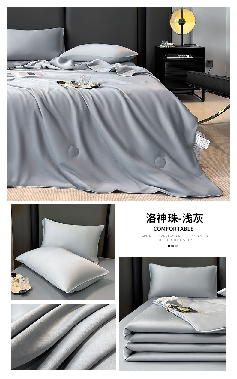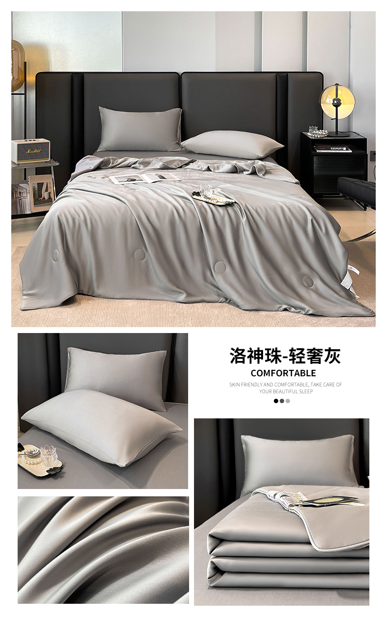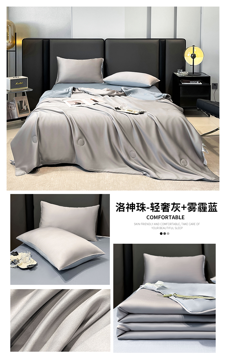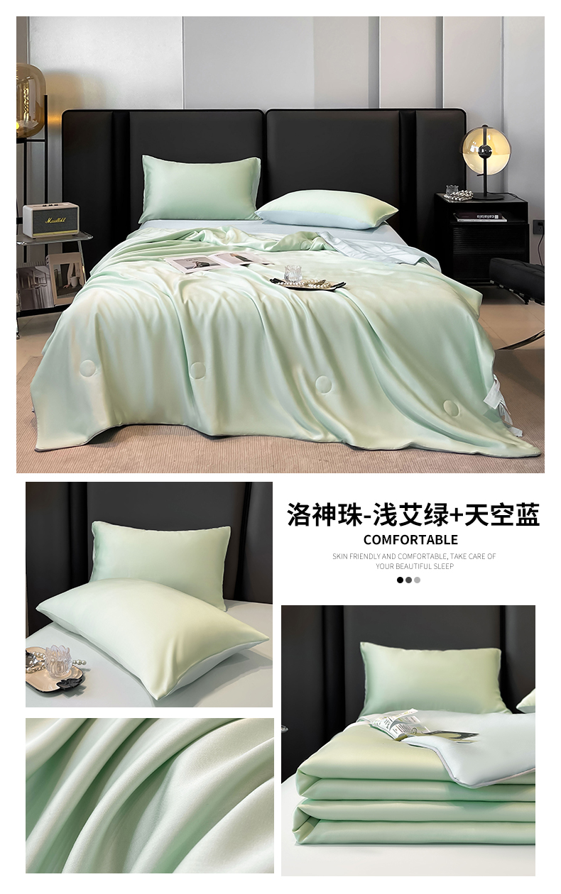 (总)雯豆天丝夏被纯色拼色A类莱赛尔凉感被子轻奢夏凉被子四件套