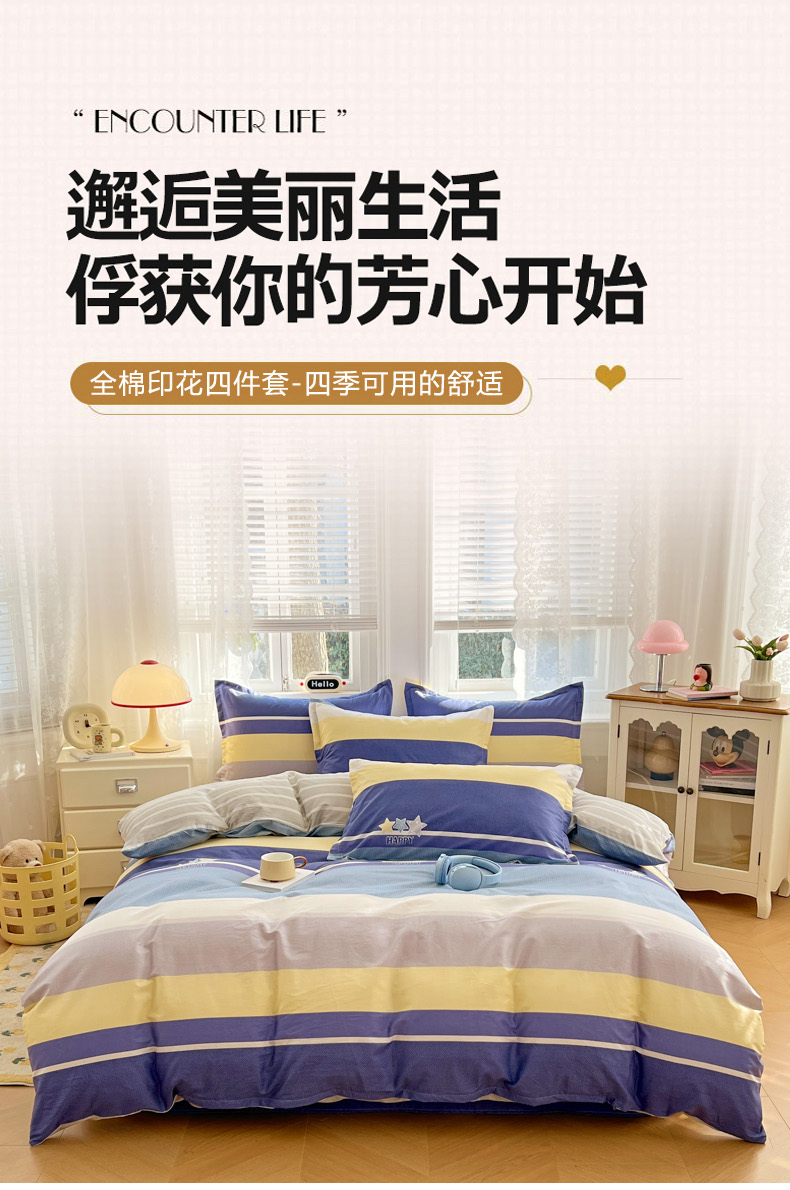 世爵 2025新款全棉印花小清新套件系列-四件套 时光序曲