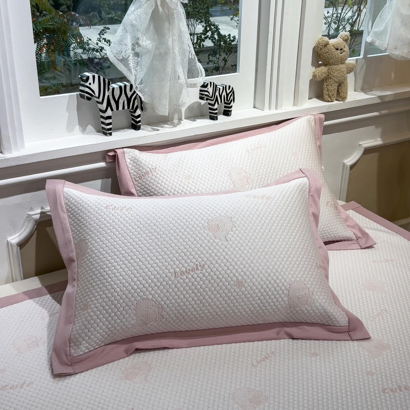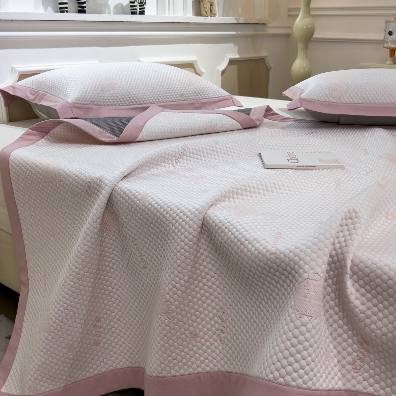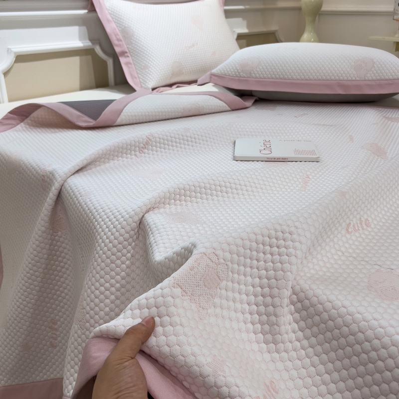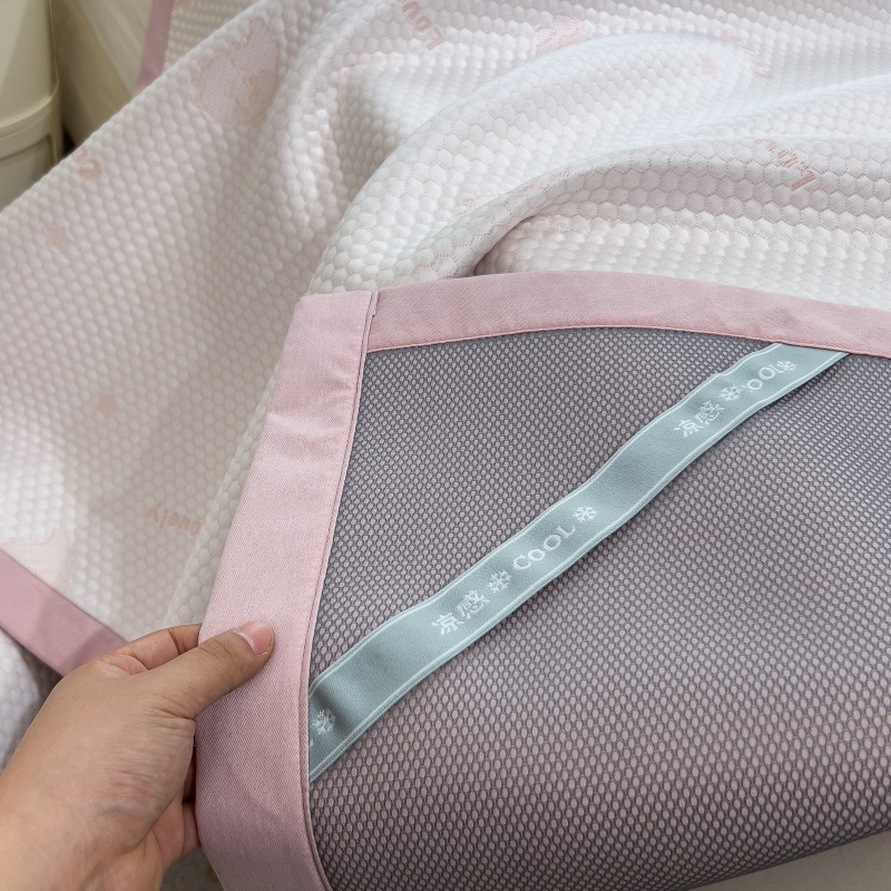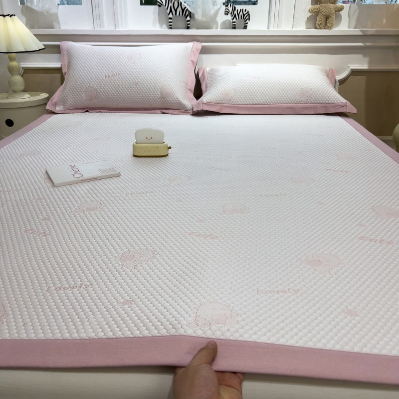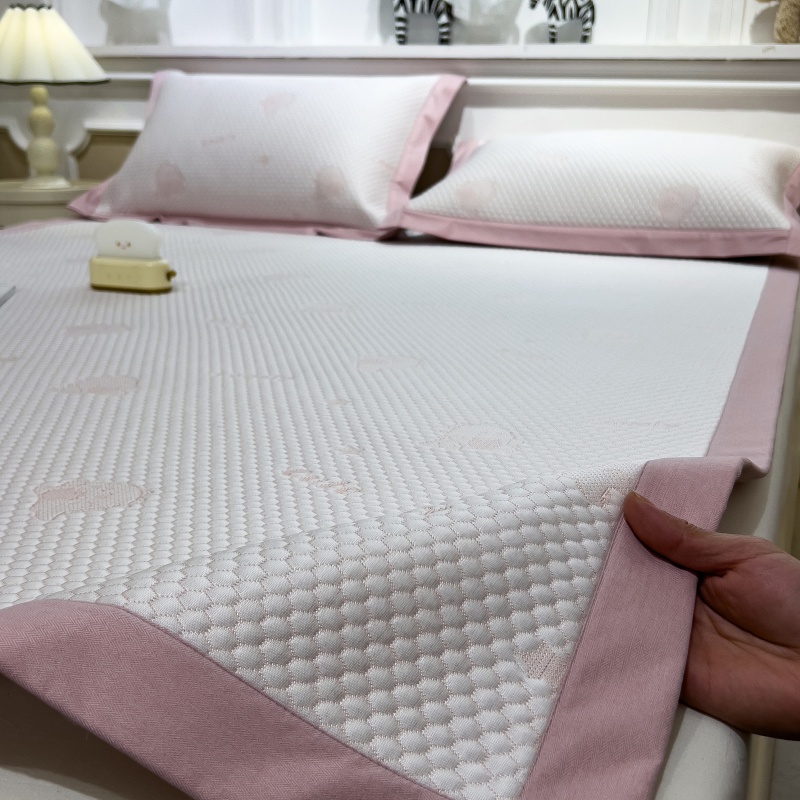 • 91家纺网 家纺一手货源 找家纺 孩子王家纺 2025新款冰丝席提花冰豆豆床单床笠-抱抱龙系列 抱抱龙-淡雅粉