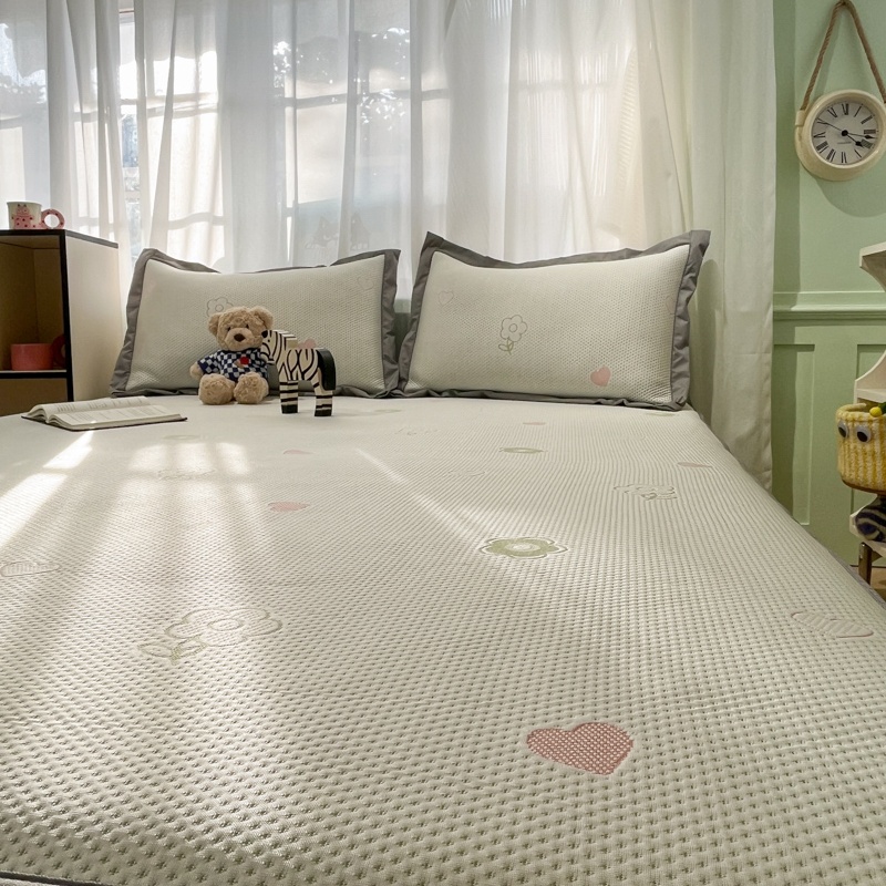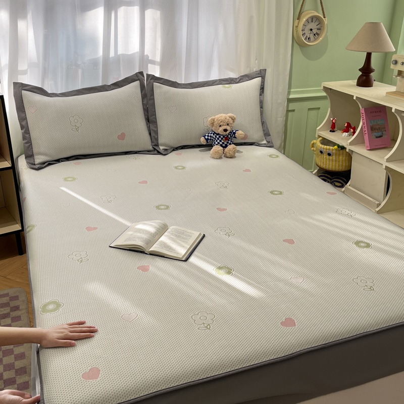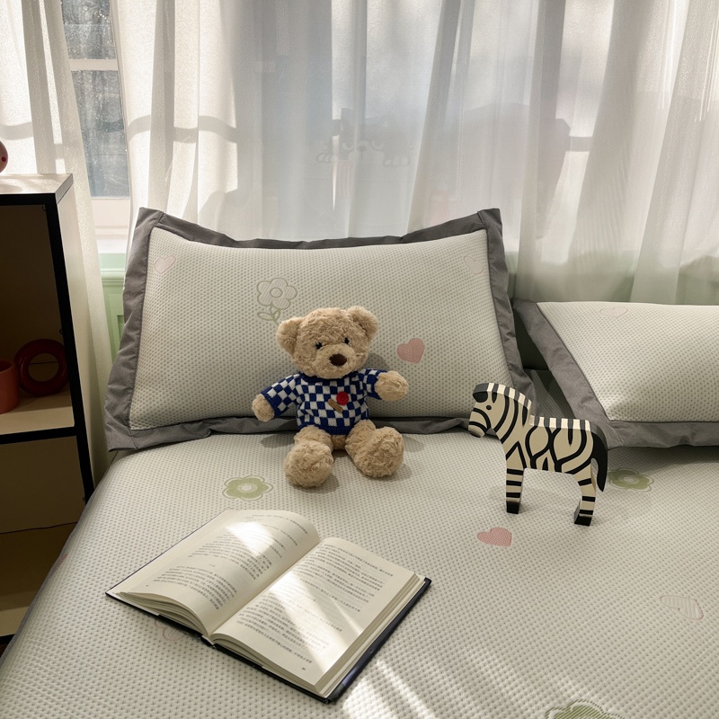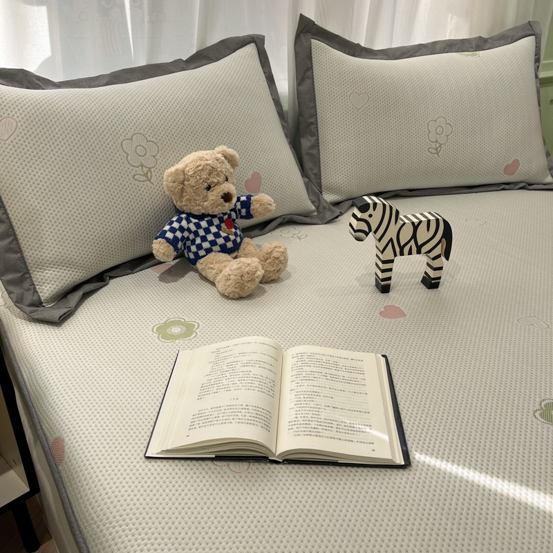 • 91家纺网 家纺一手货源 找家纺 孩子王家纺 2025新款冰丝席提花冰豆豆系列床单床笠 小春日和床笠