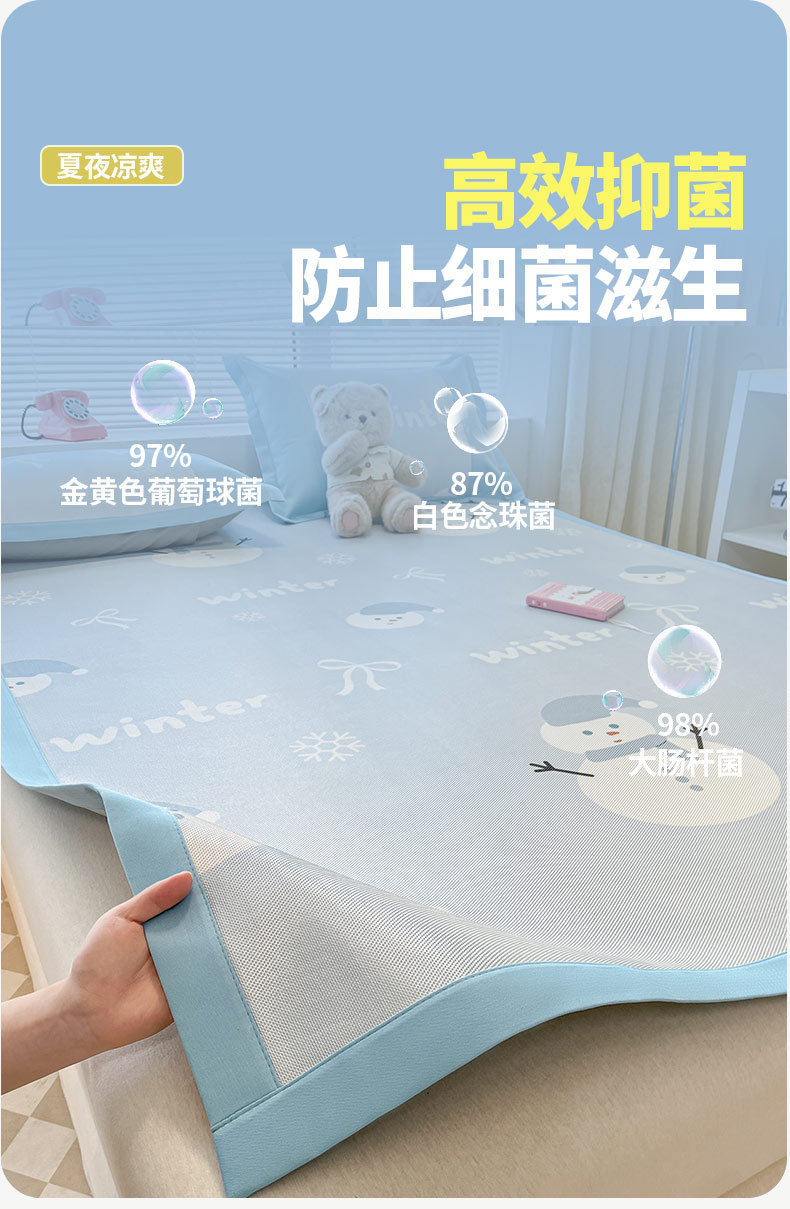 商品名称:鑫琪莱家纺 2025新款数码印花加密冰藤凉席三件套 床笠款-冰雪童话
