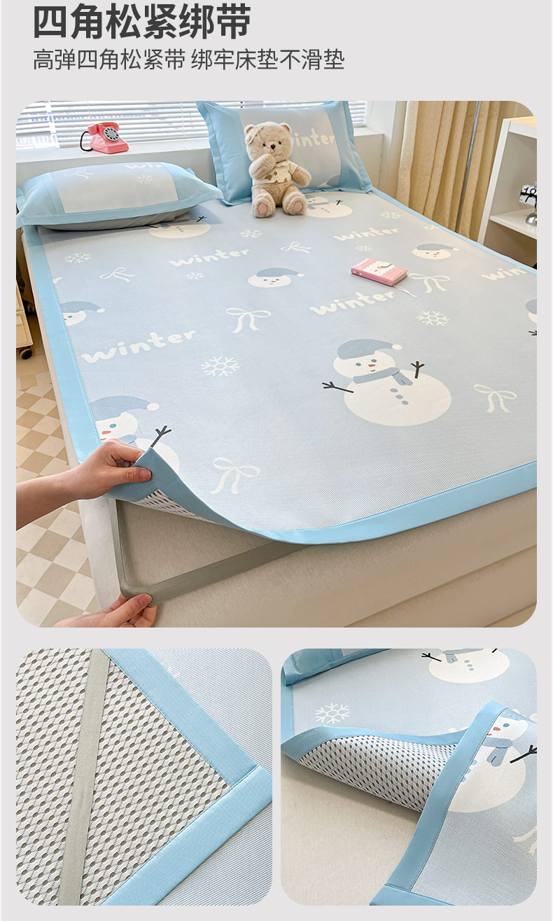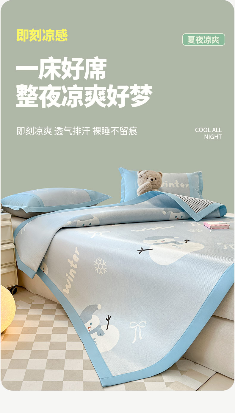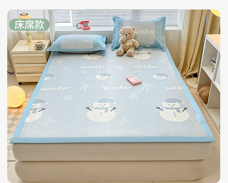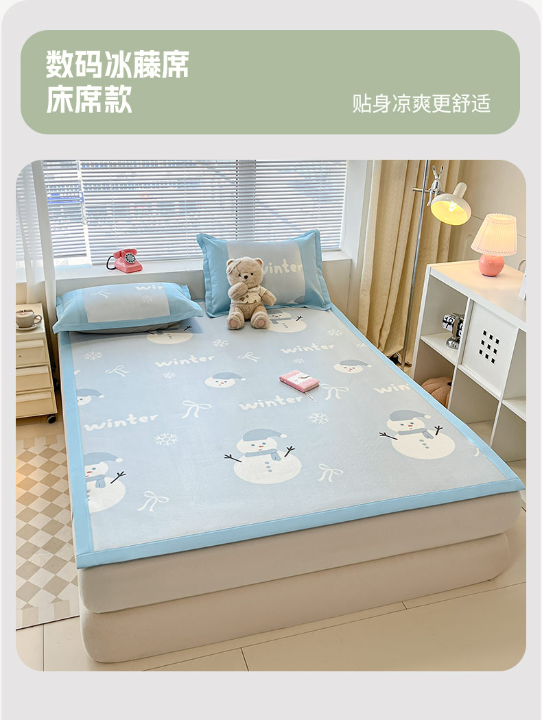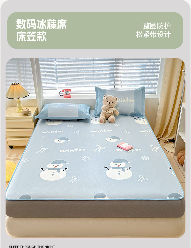 鑫琪莱家纺 2025新款数码印花加密冰藤凉席三件套 床笠款-冰雪童话