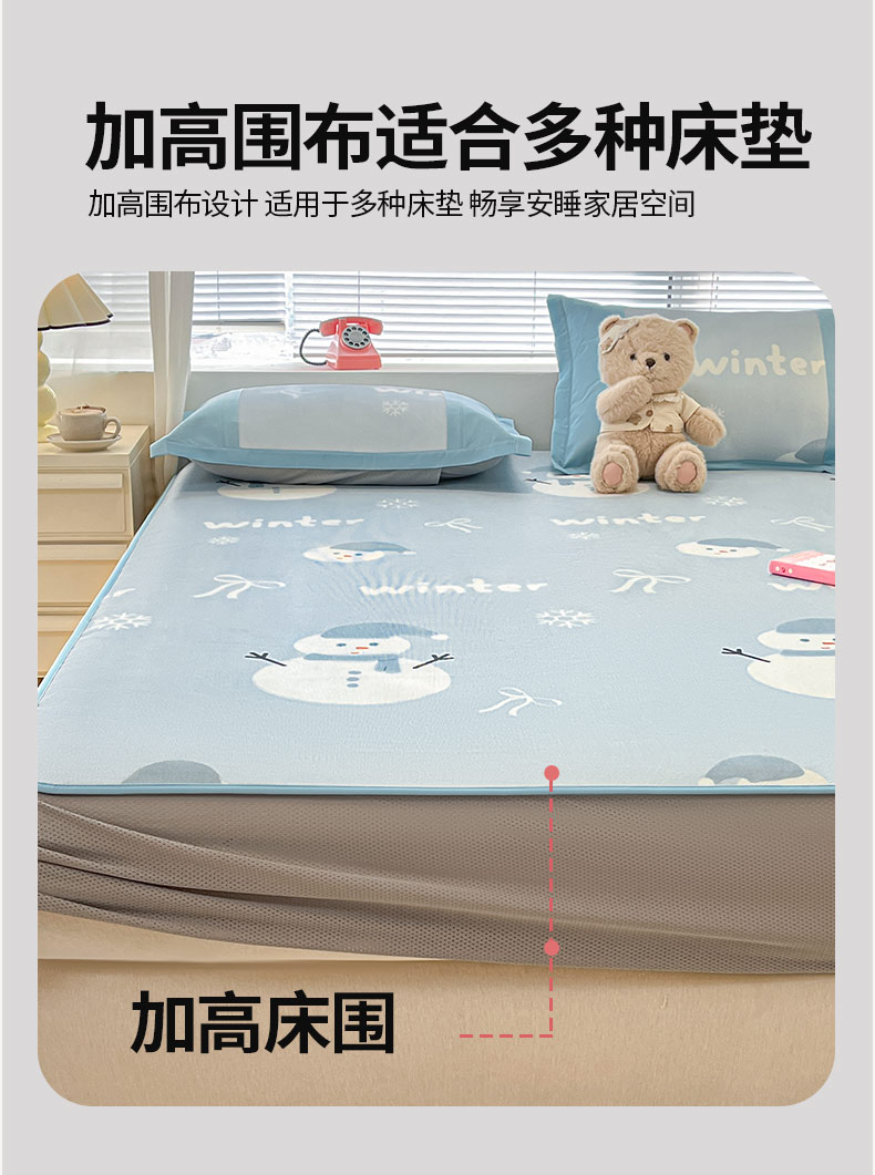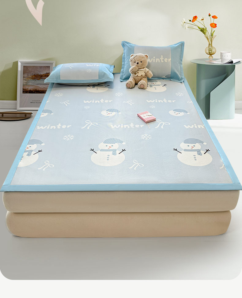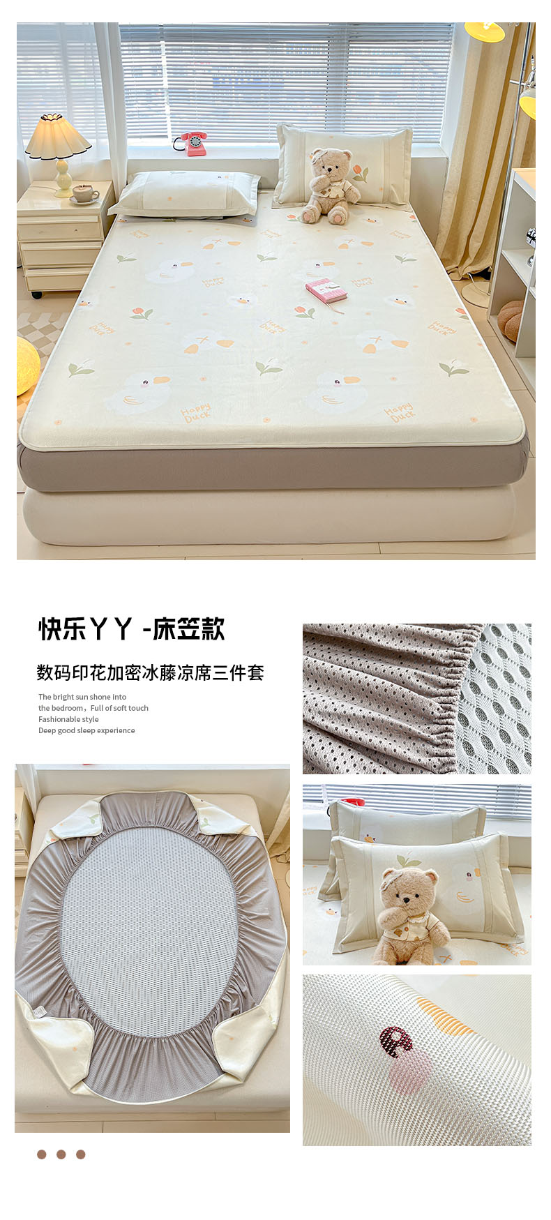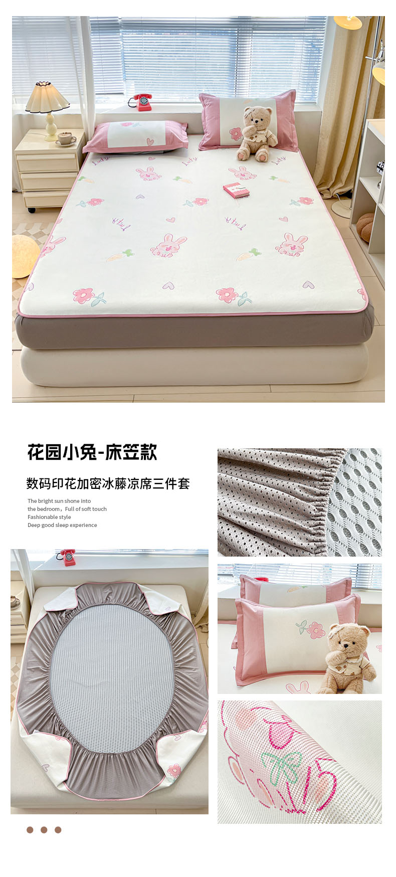 鑫琪莱家纺 2025新款数码印花加密冰藤凉席三件套 床笠款-冰雪童话