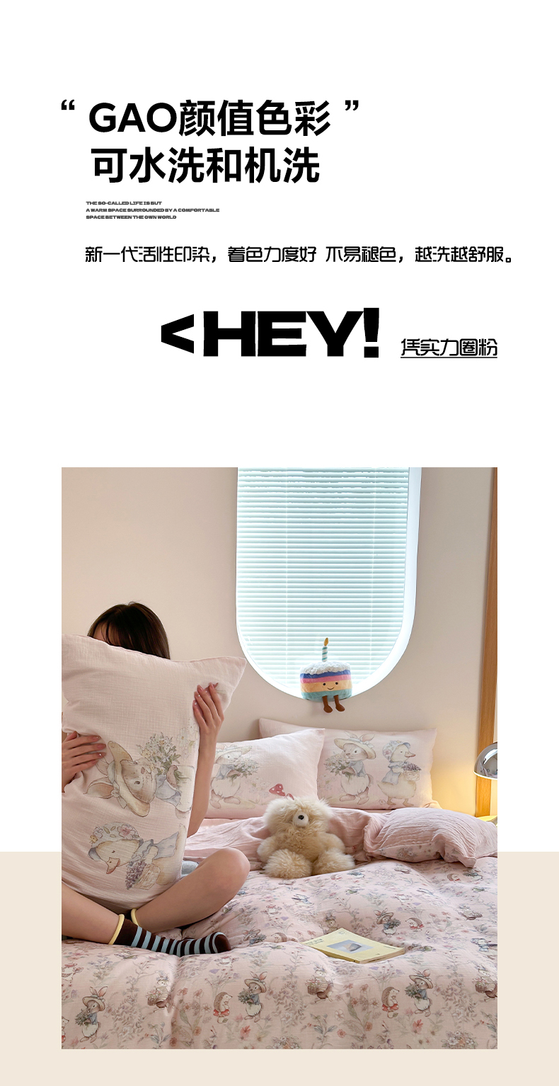 (总)卡巴伦家纺 2025新款全棉皱皱纱大版卡通数码印花款四件套一,洛可可兔-粉,班尼的花园-粉,班尼的花园-黄,漂亮的领结-绿,漂亮的领结-米白,熊猫噗噗-绿,樱桃真甜-奶白