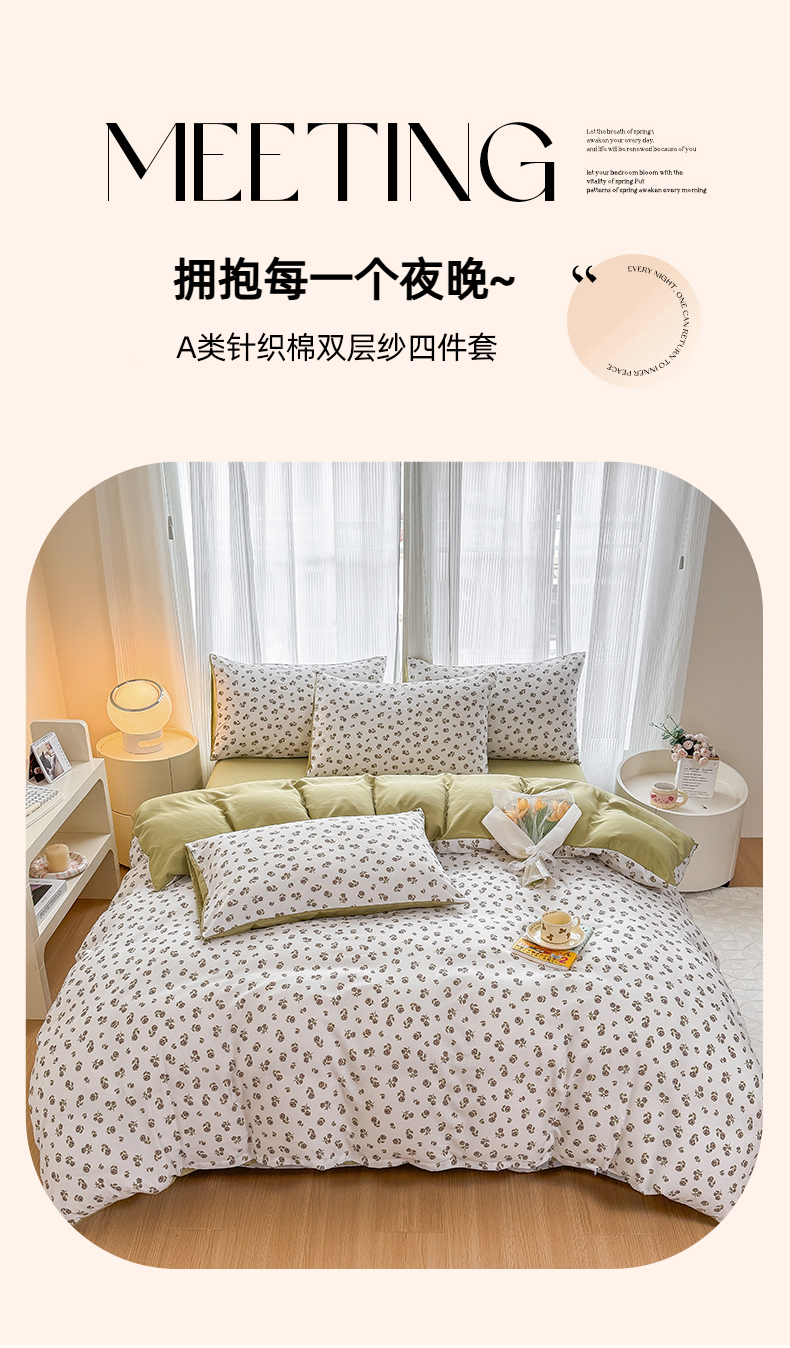 铭浩家纺 2025新款A类针织棉双层纱四件套 余笙