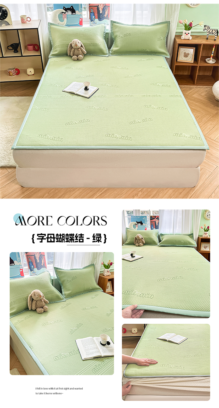 莱米家纺 2025新款冰感凉豆豆凉席 字母蝴蝶结—绿