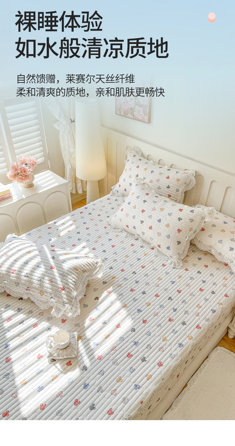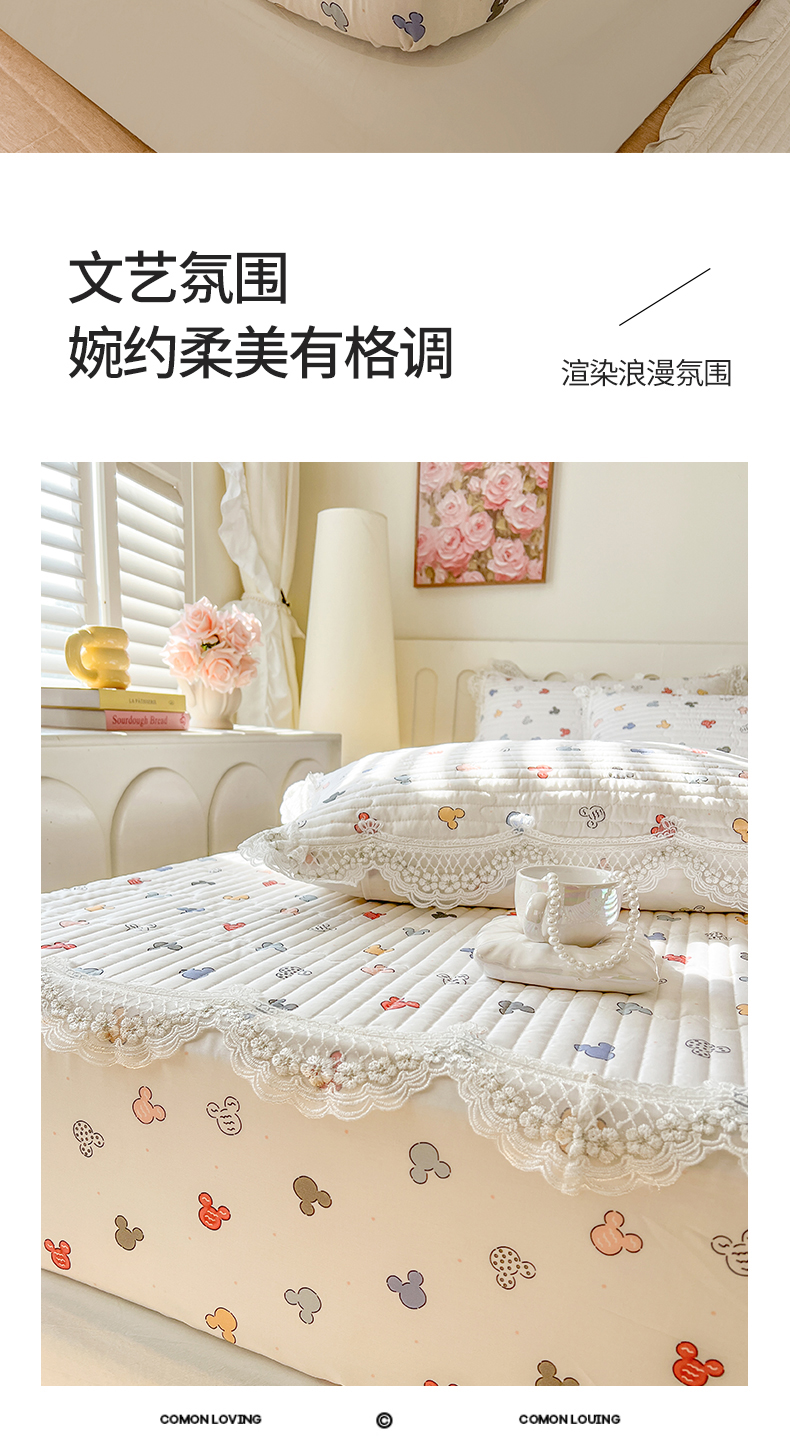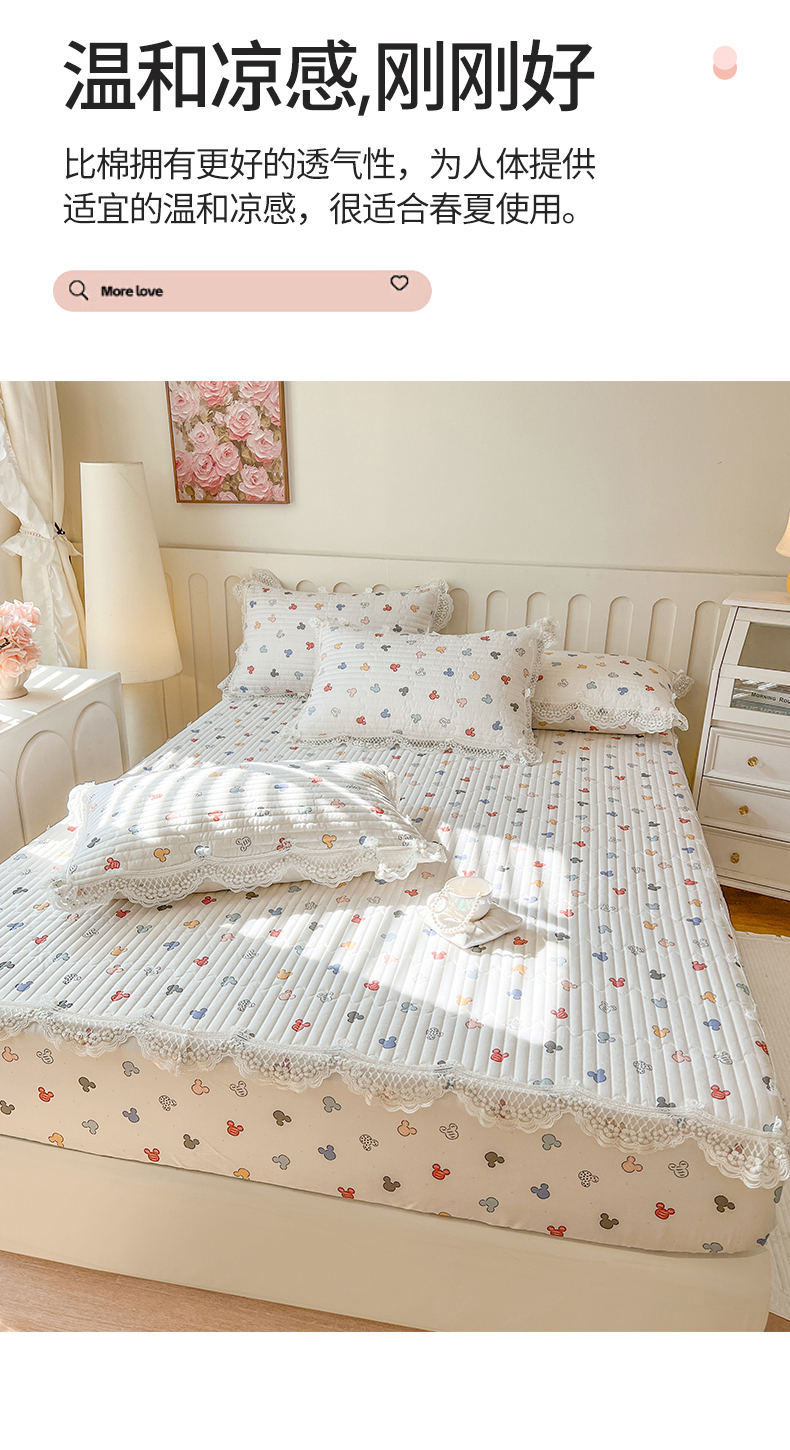 (总)麒豆豆 2025新款优舒棉花边床笠-蜜糖熊,白,粉,黄,灰,绿