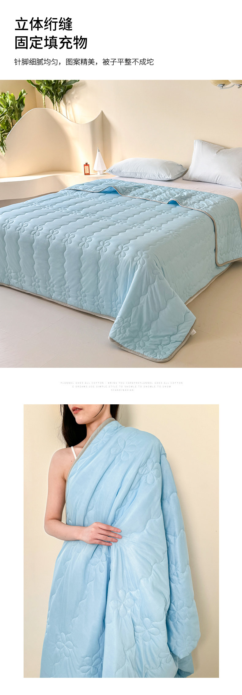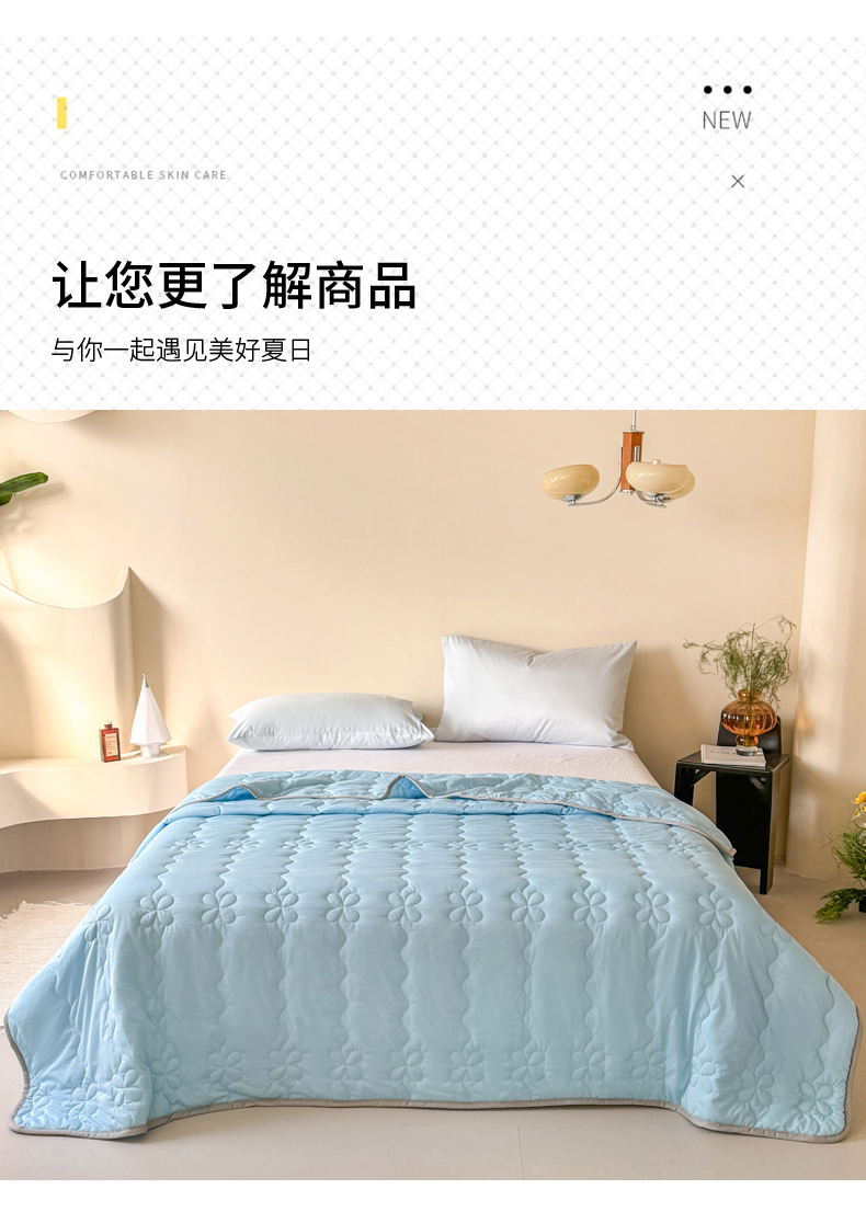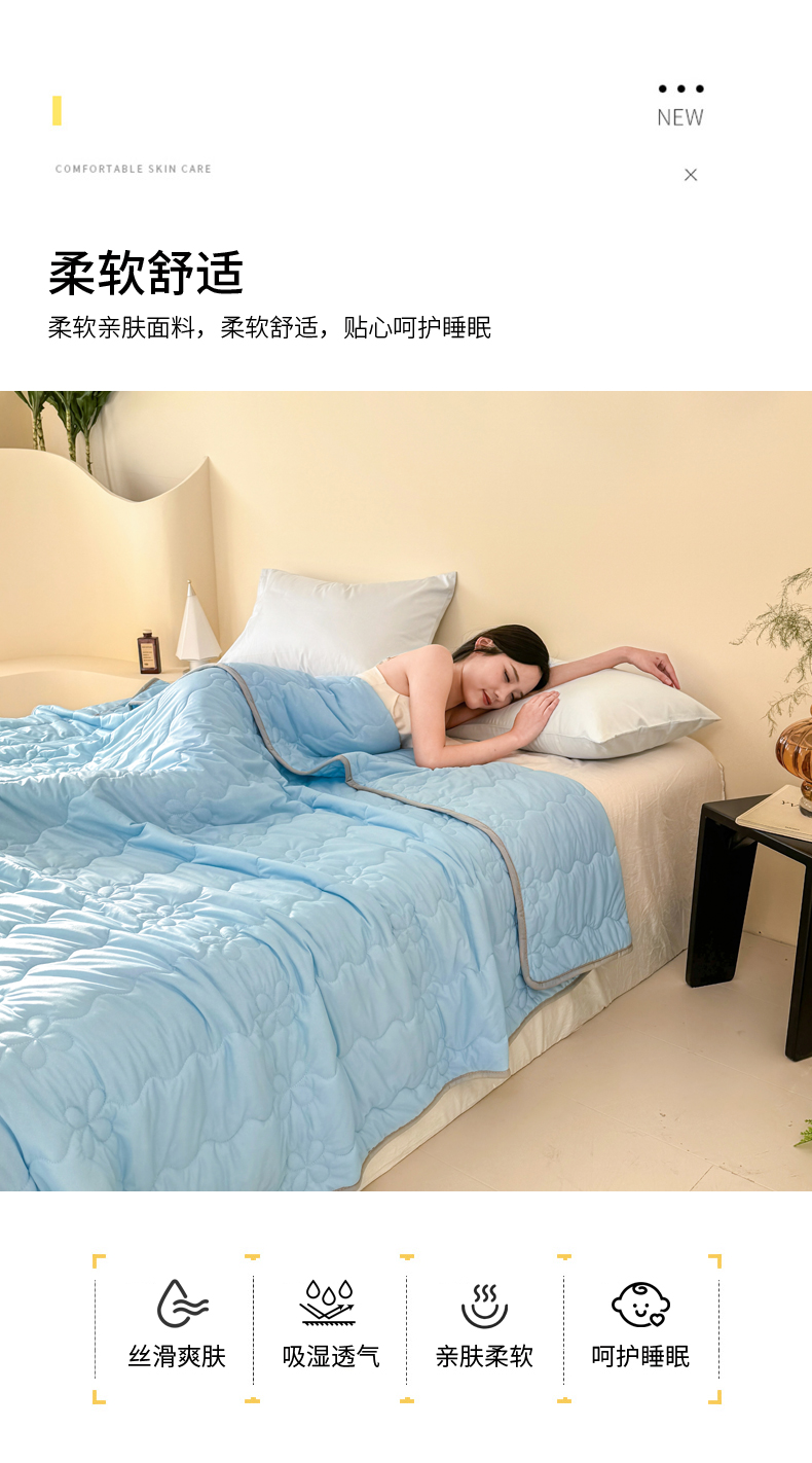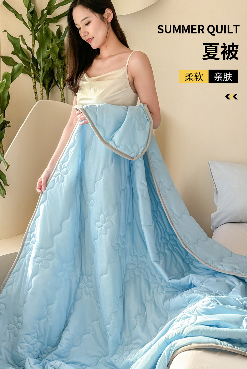 商品名称:丹本家纺 2025新款简约无印风纯色凉感丝小包边夏被 天蓝