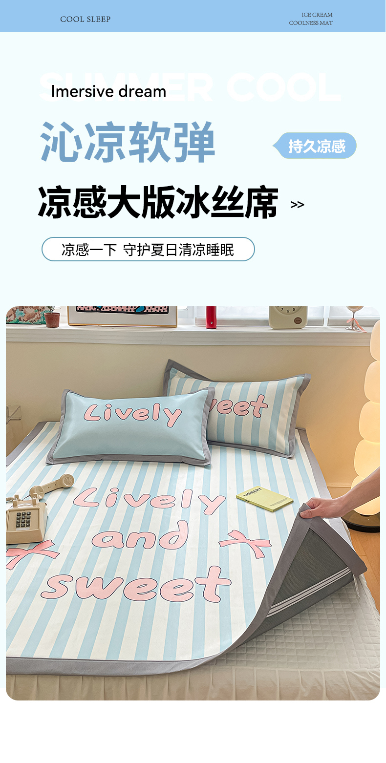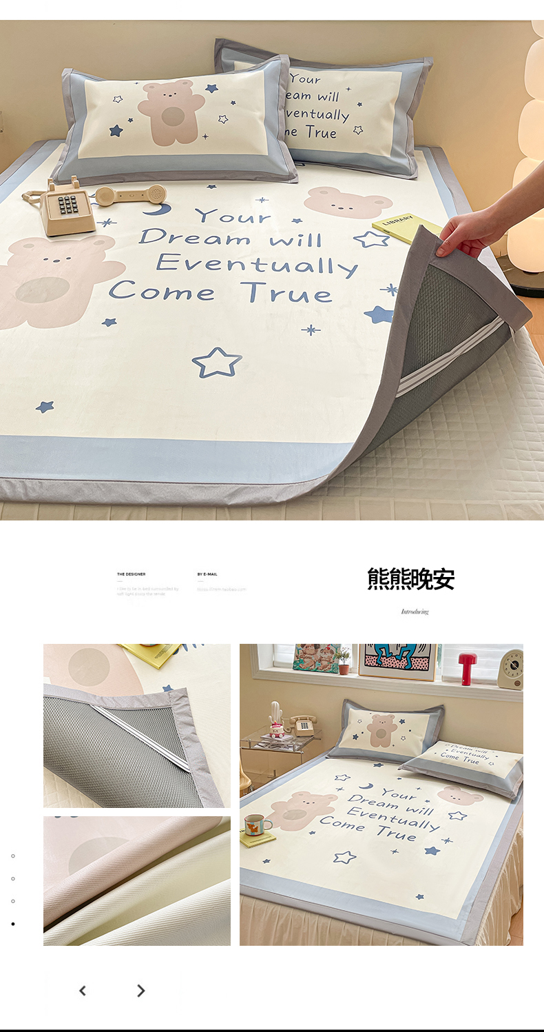 川悦生活 2025新款大版凉感冰丝席三件套 奶油味的小熊
