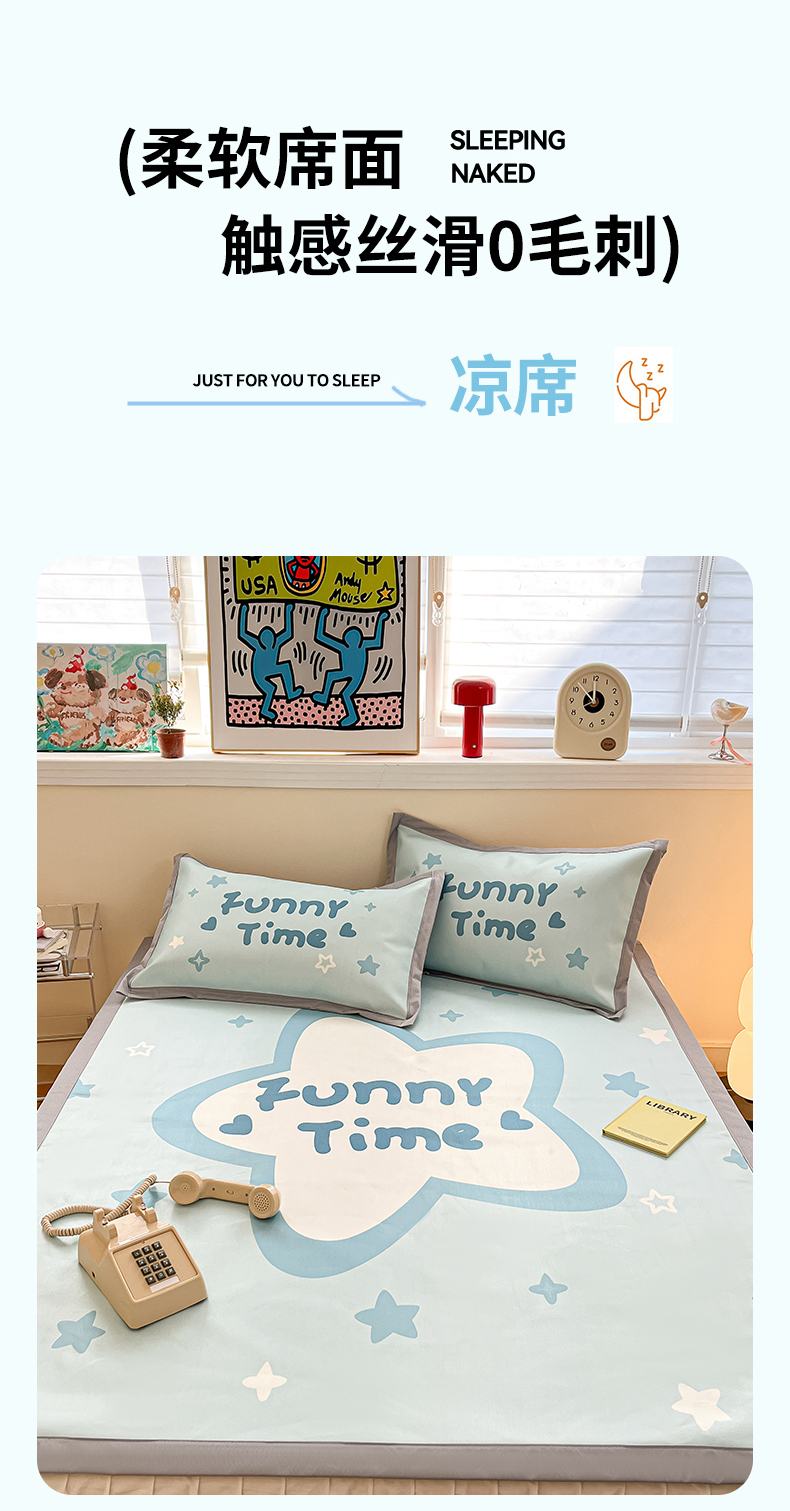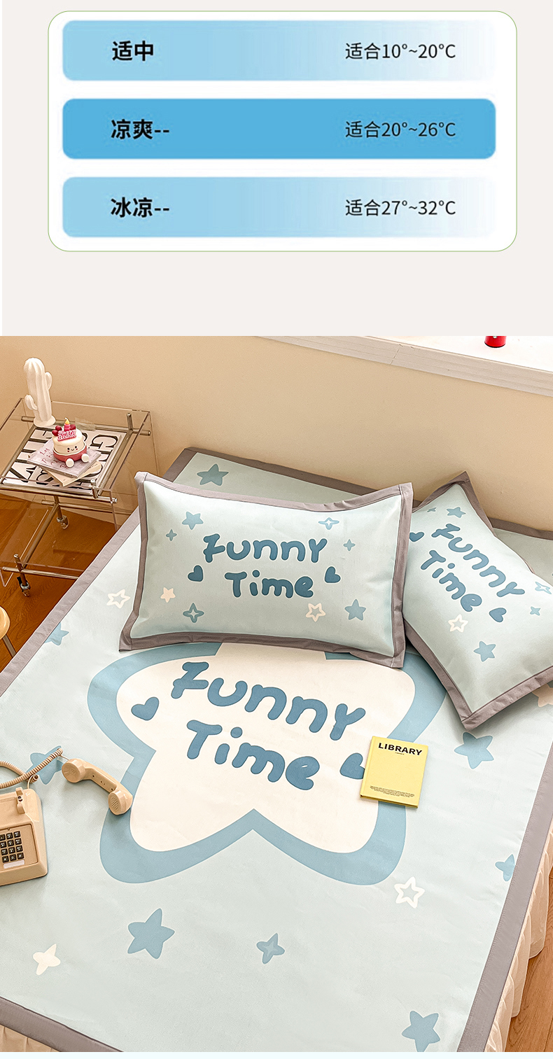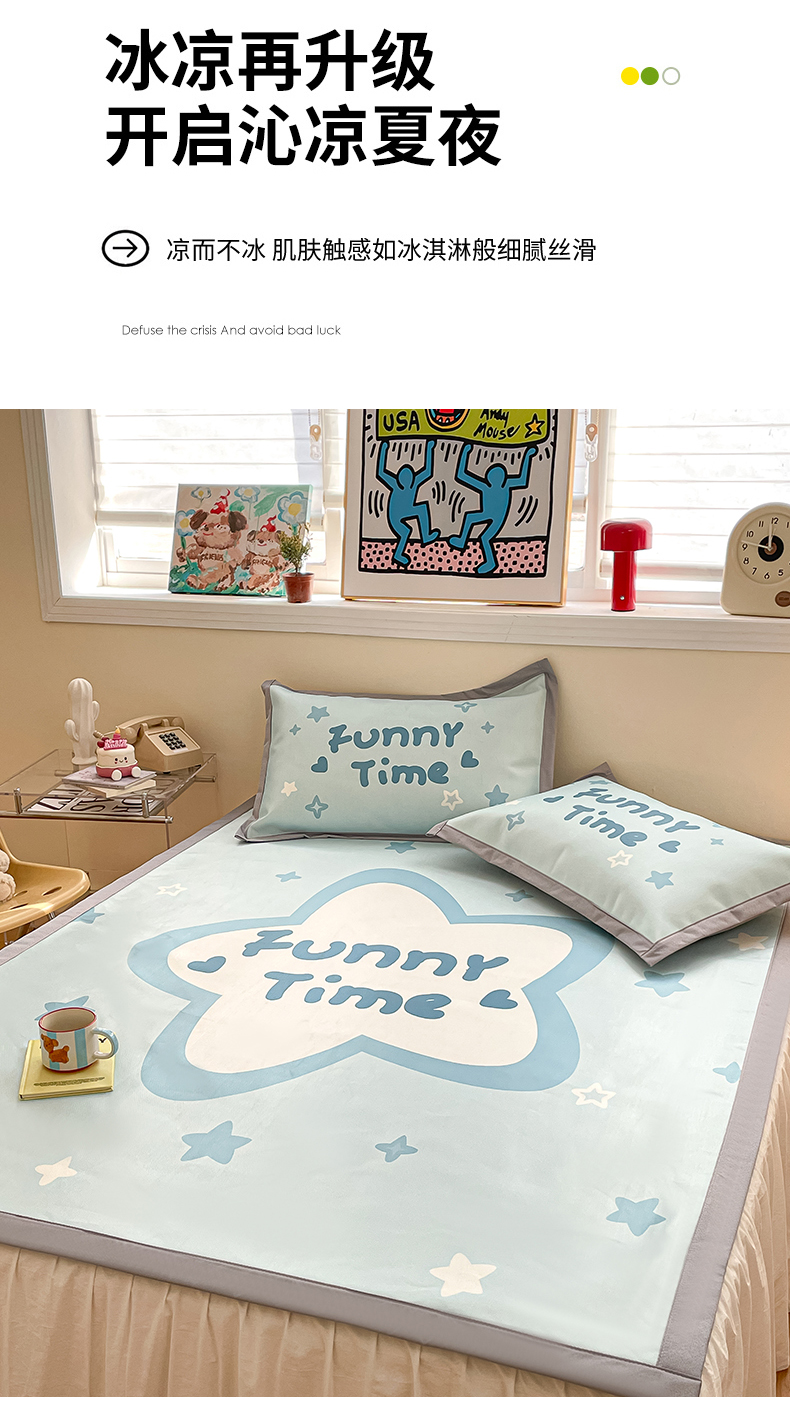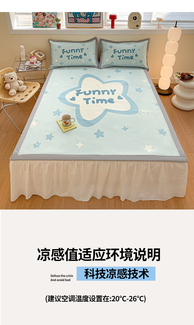 商品名称:川悦生活 2025新款大版凉感冰丝席三件套 星星小奶昔