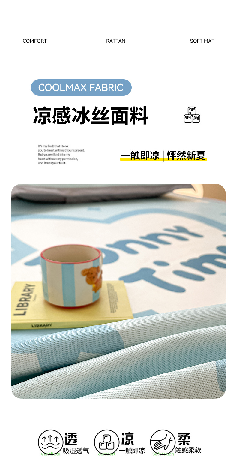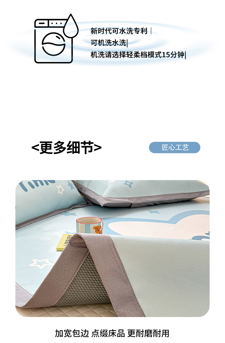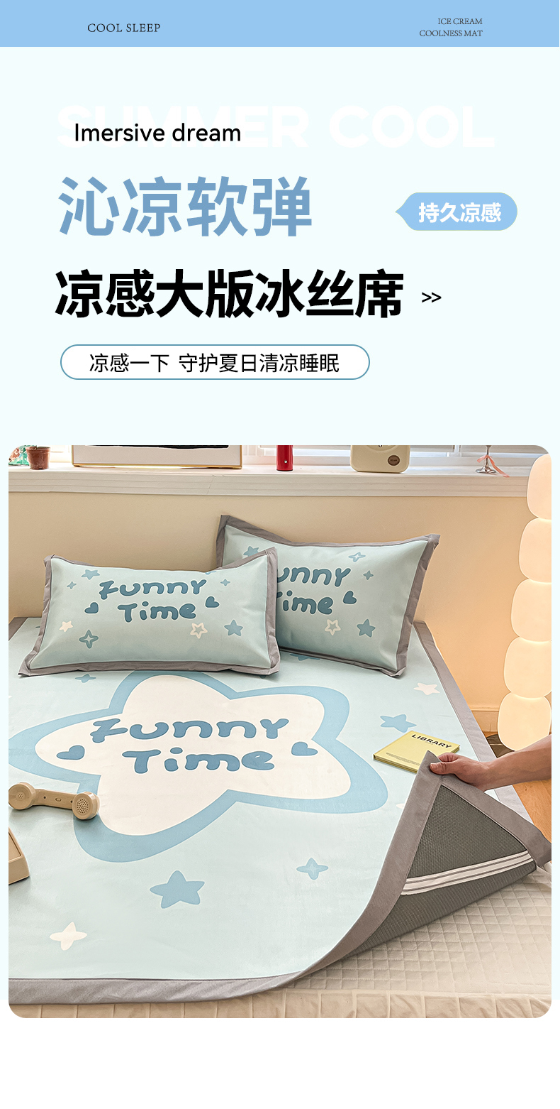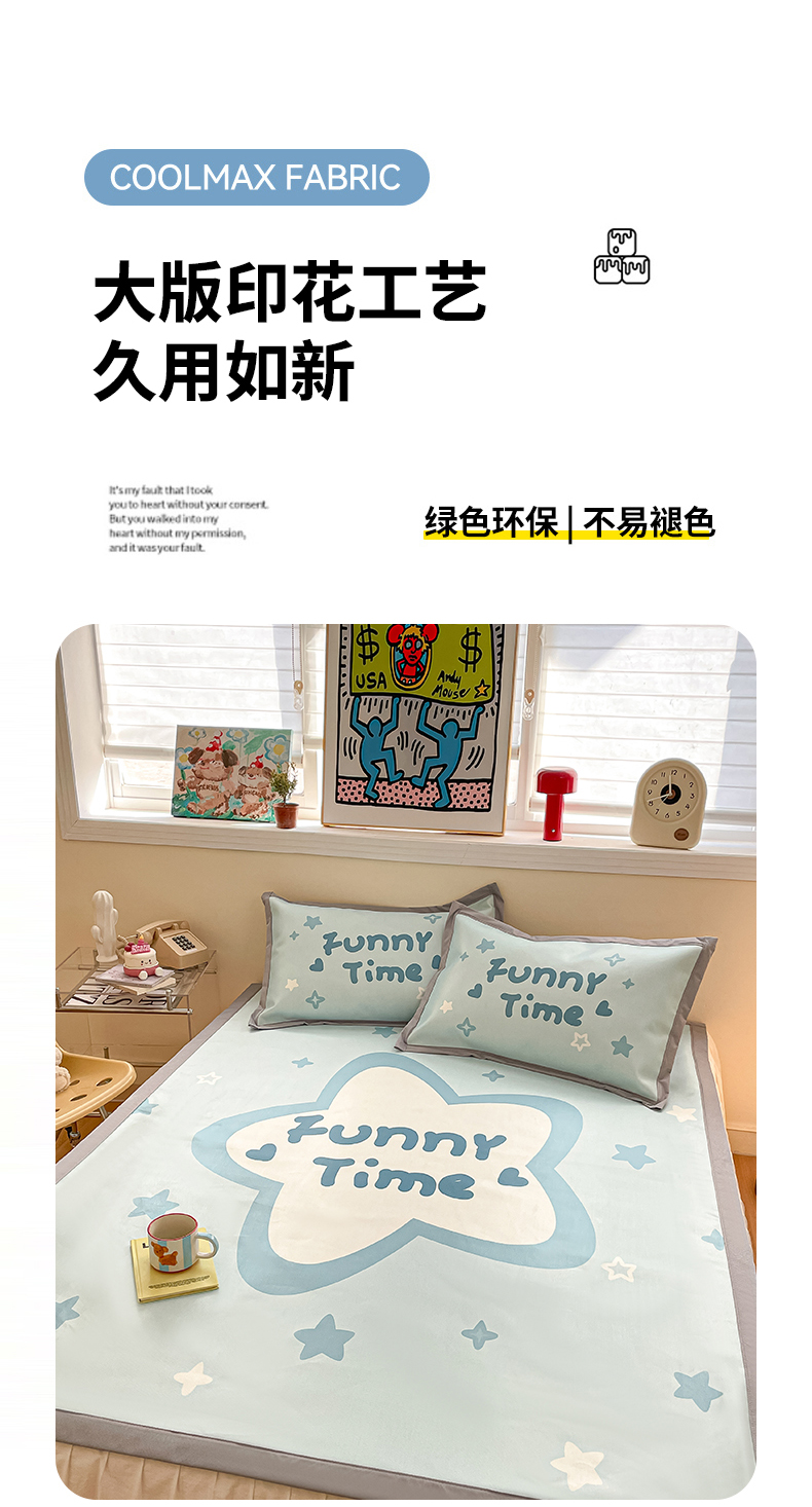 商品名称:川悦生活 2025新款大版凉感冰丝席三件套 星星小奶昔