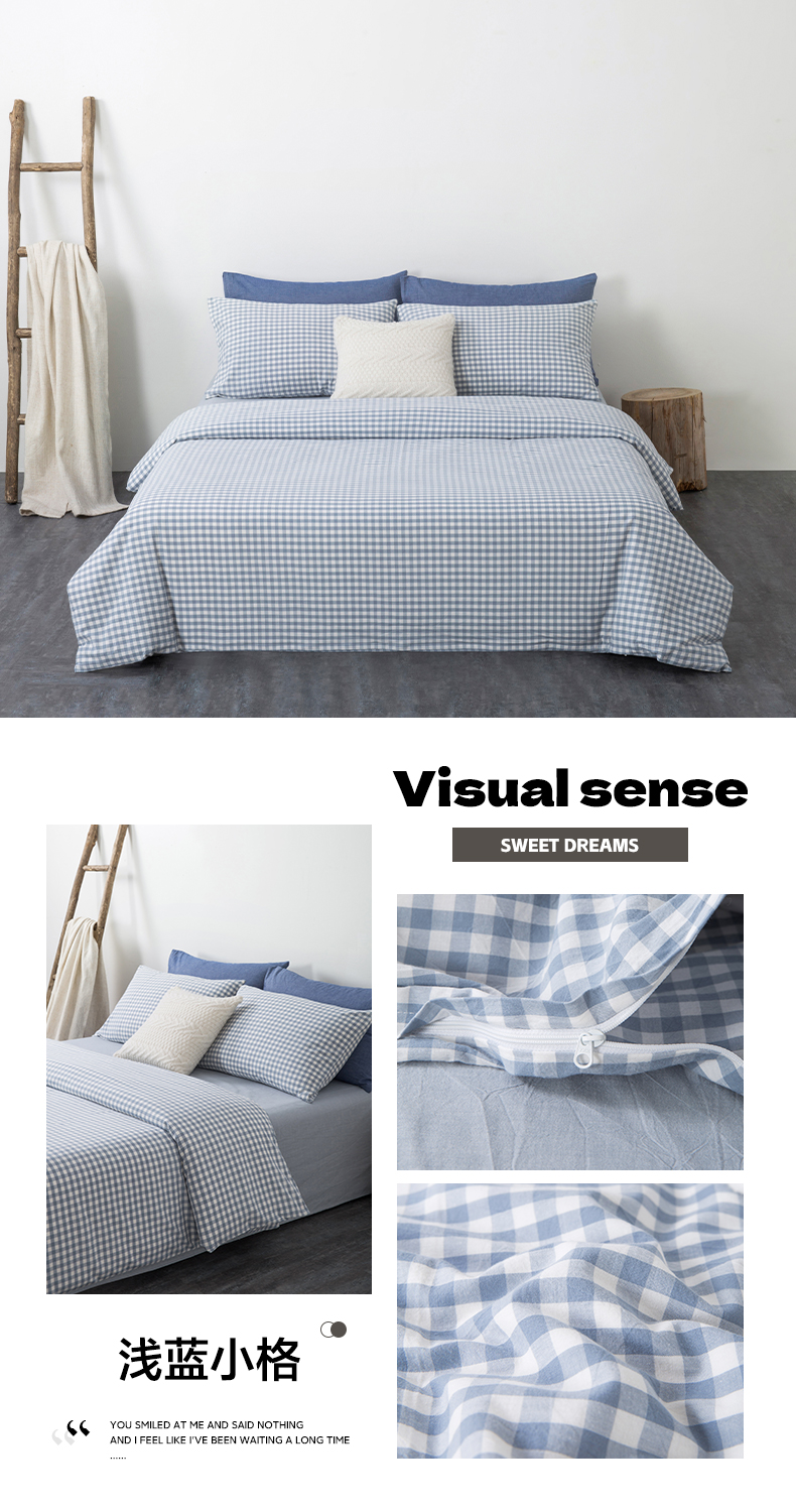 • 91家纺网 家纺一手货源 找家纺 玖弘家居 2025新款水洗棉单被套 浅蓝小格