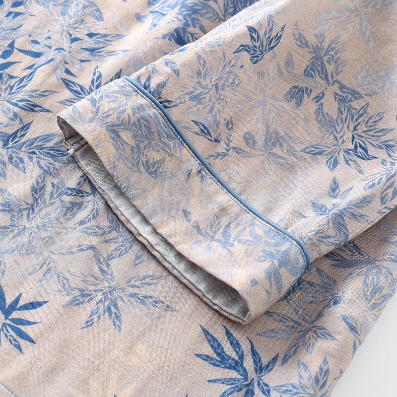 (总)洛兰沙家居馆 2025新款日系无印风色织纯棉双层纱布家居服男士春秋夏季全棉长袖睡衣批发,无印风男