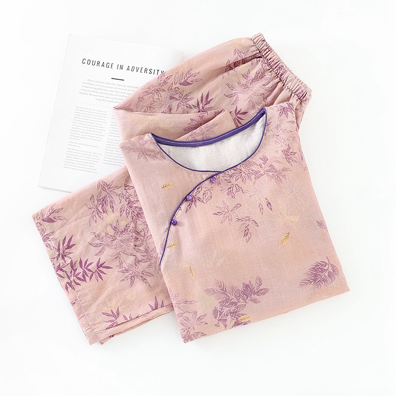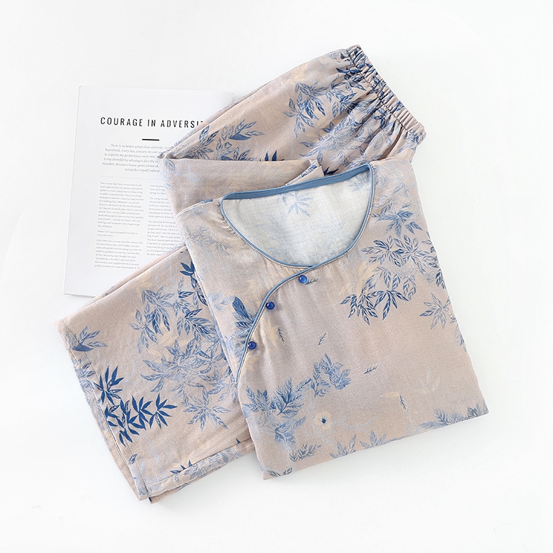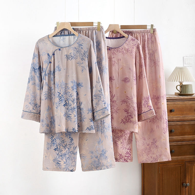 商品名称:洛兰沙家居馆【只代发】【只代发】 2025新款国风竹纤维鸟语花香春夏女睡衣大码长袖长裤自带凉感休闲套装 ls1311
