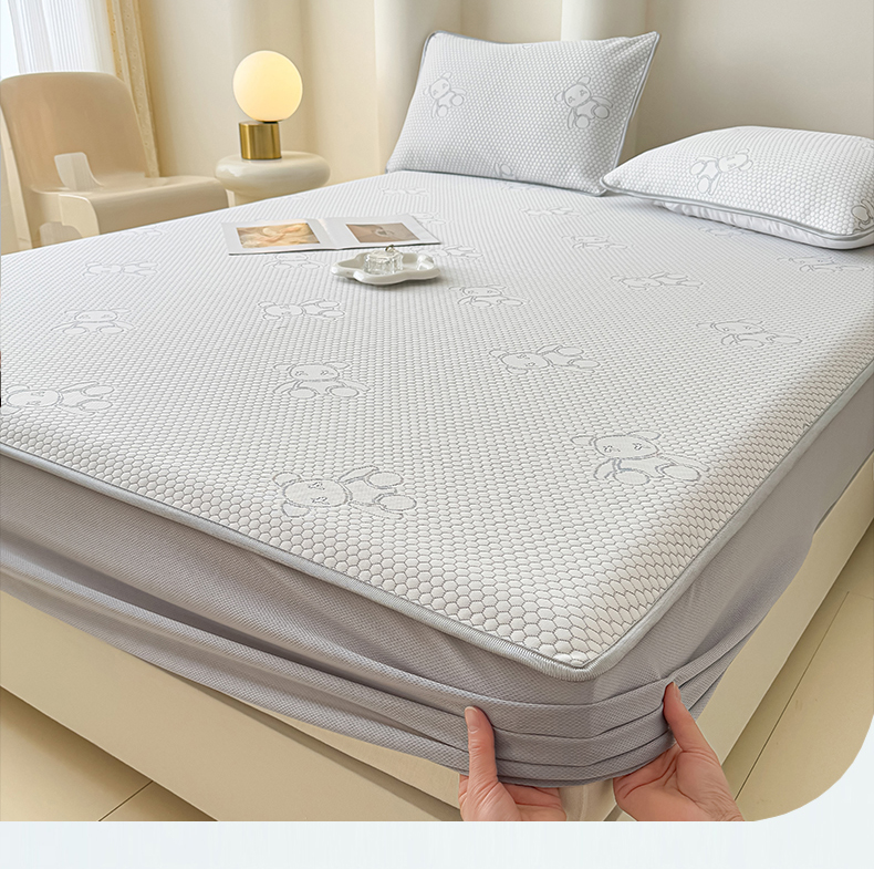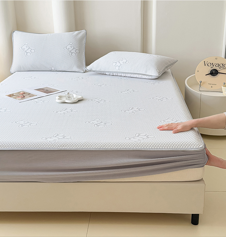 (总)伊人坊 2024新款原棉大豆防水床护垫,明月白,碧水青,布朗灰,玫瑰粉,米杏色,苹果绿