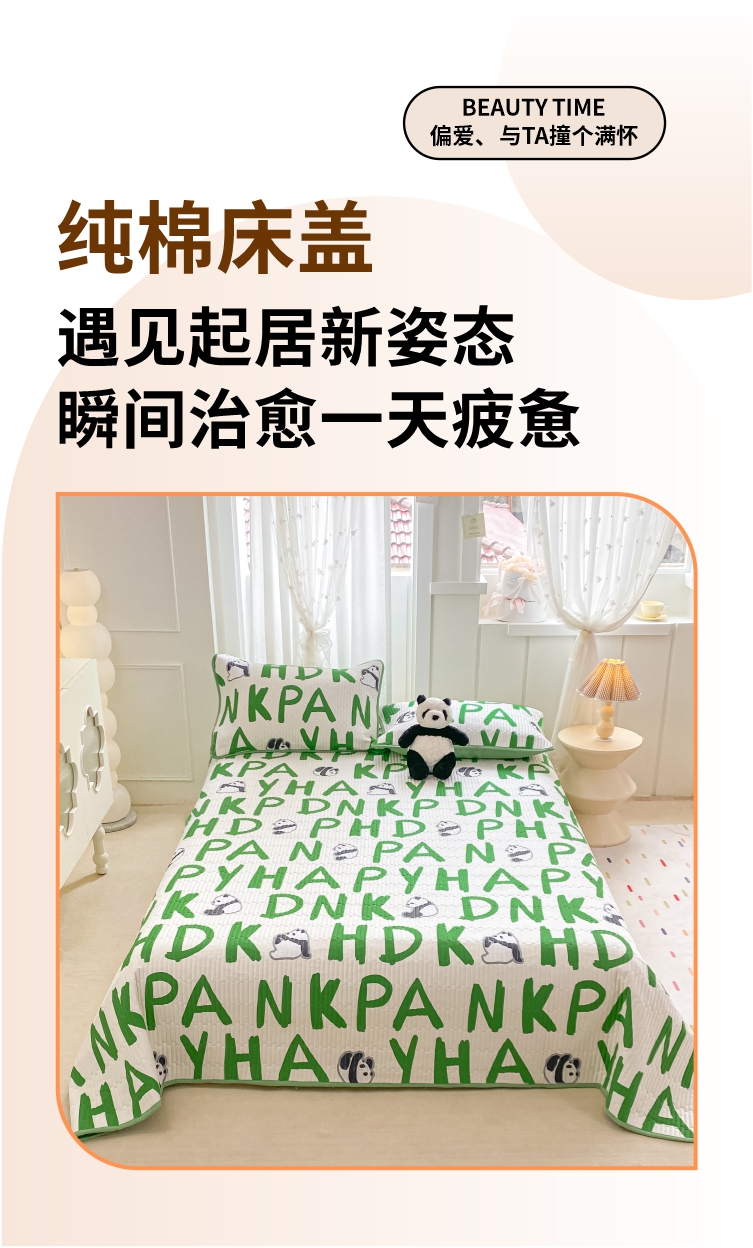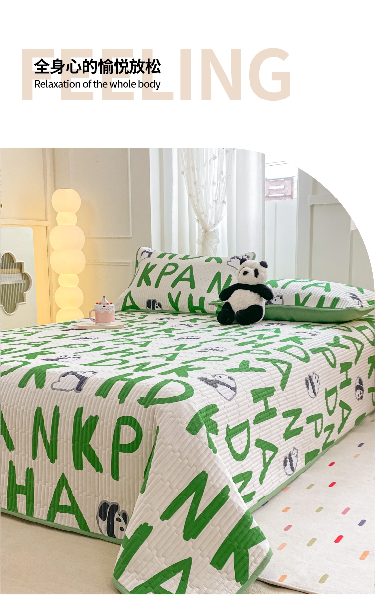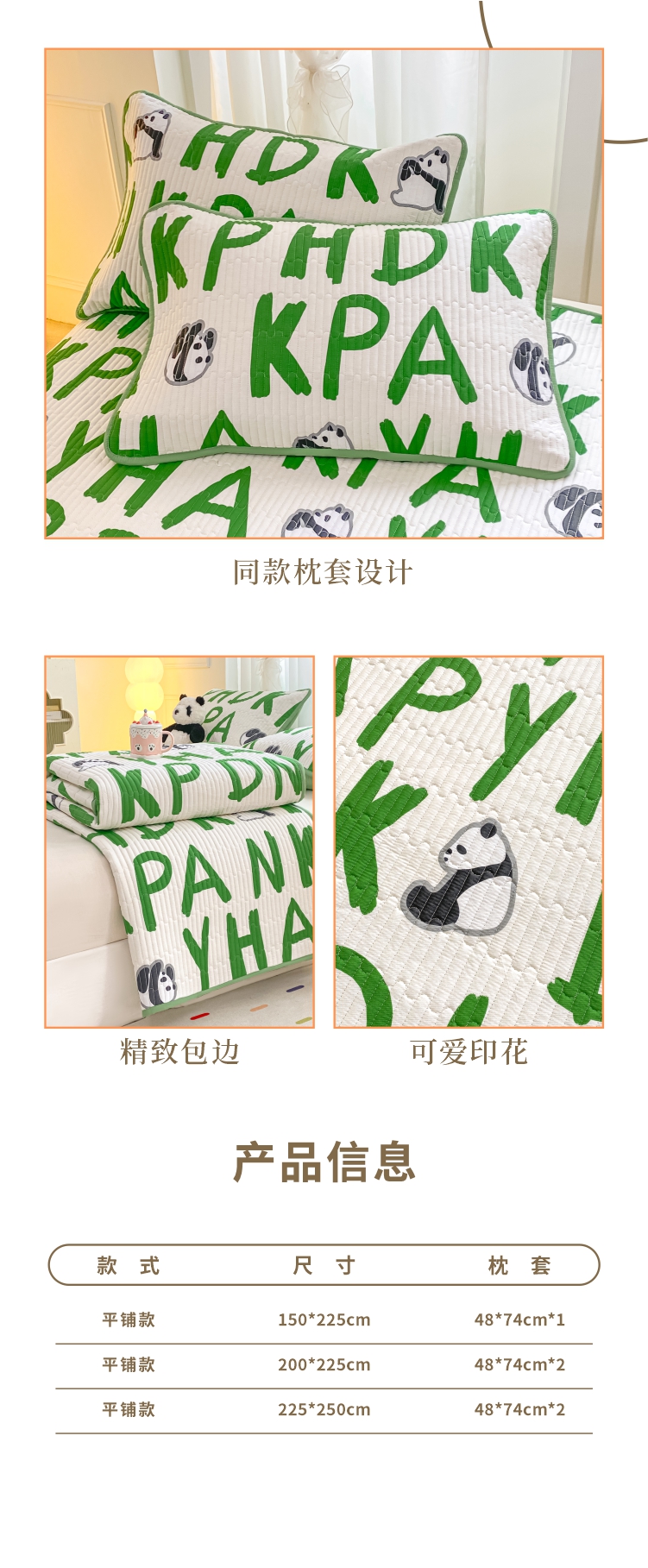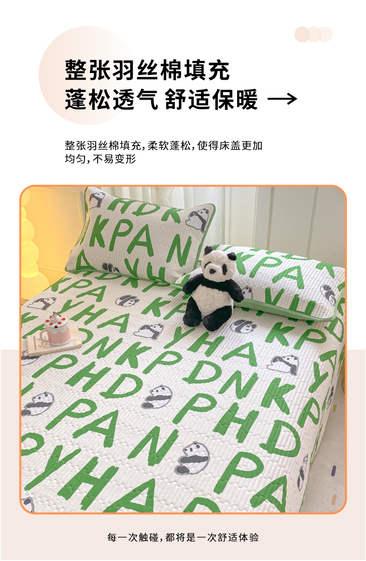 顺顺家纺 2025新款全棉卡通夹棉床盖 熊猫宝贝