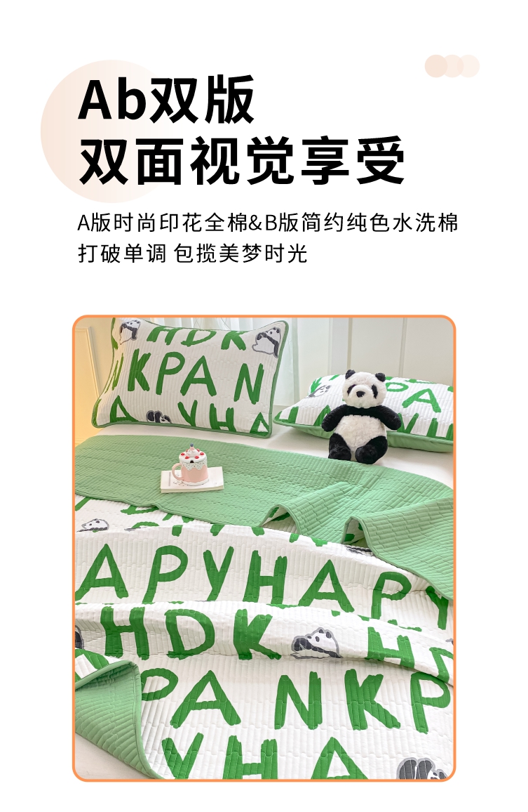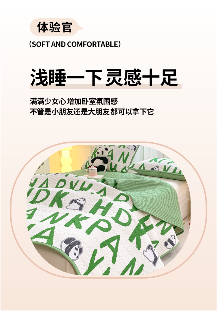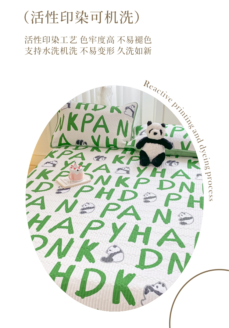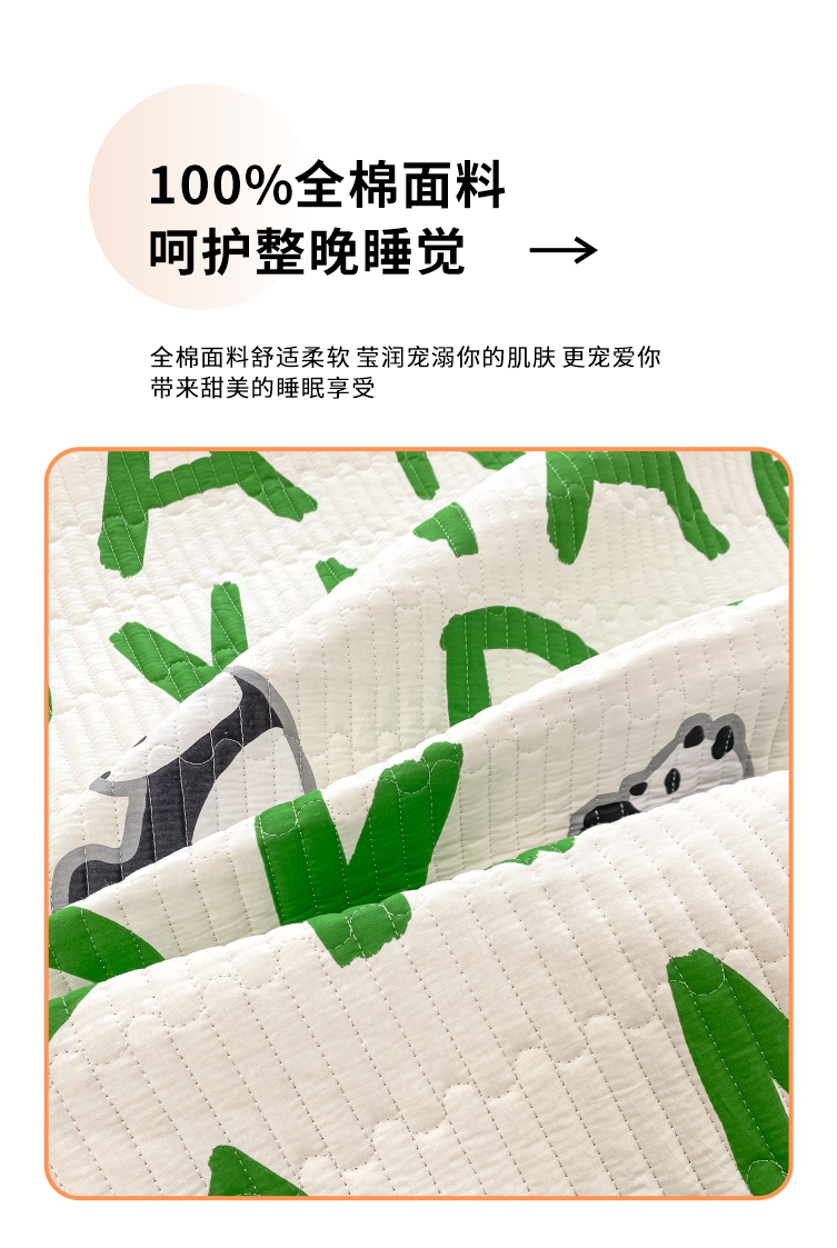 顺顺家纺 2025新款全棉卡通夹棉床盖 熊猫宝贝