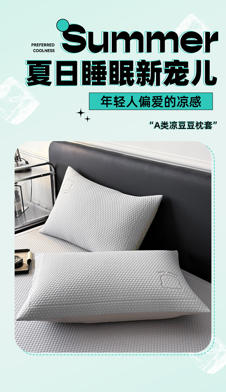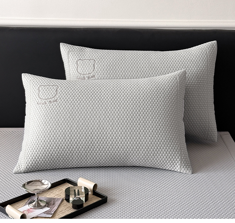 商品名称:全季家居 2025新款全季家居A类三明治凉豆豆刺绣枕套 浅灰