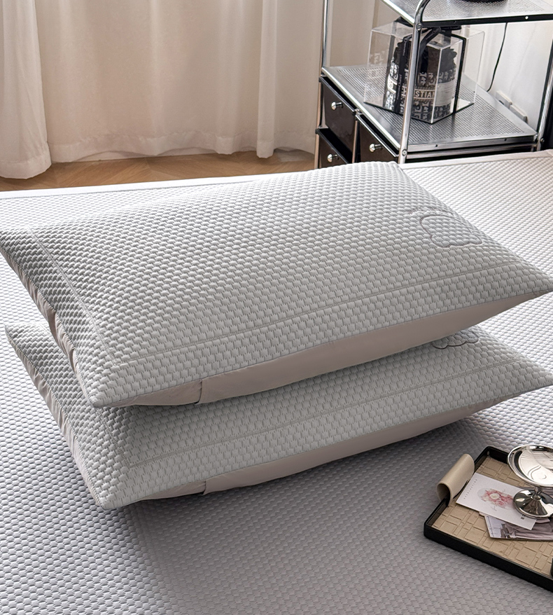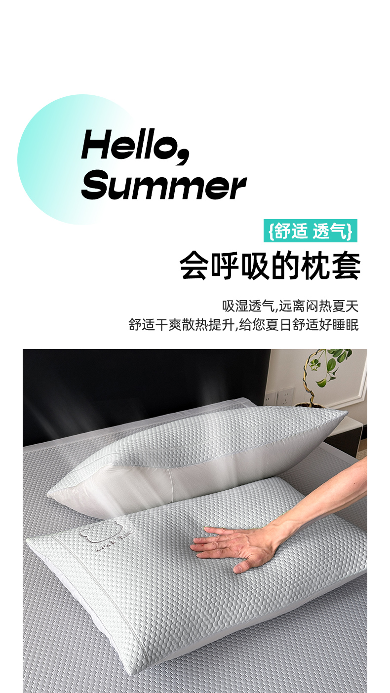 全季家居 2025新款全季家居A类三明治凉豆豆刺绣枕套 浅灰