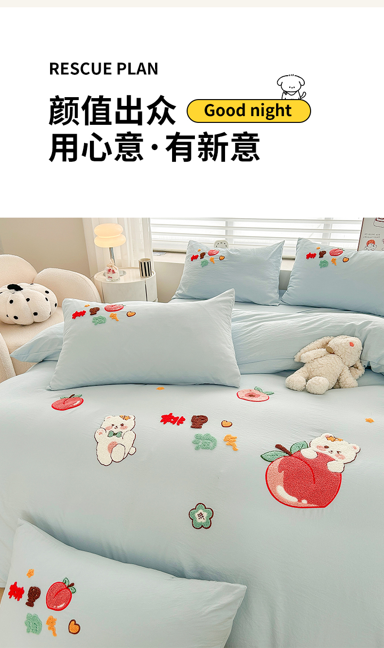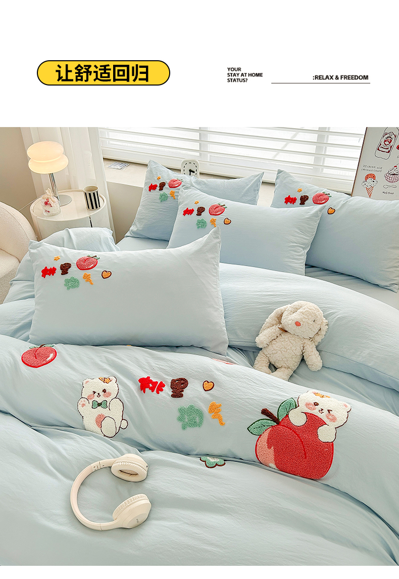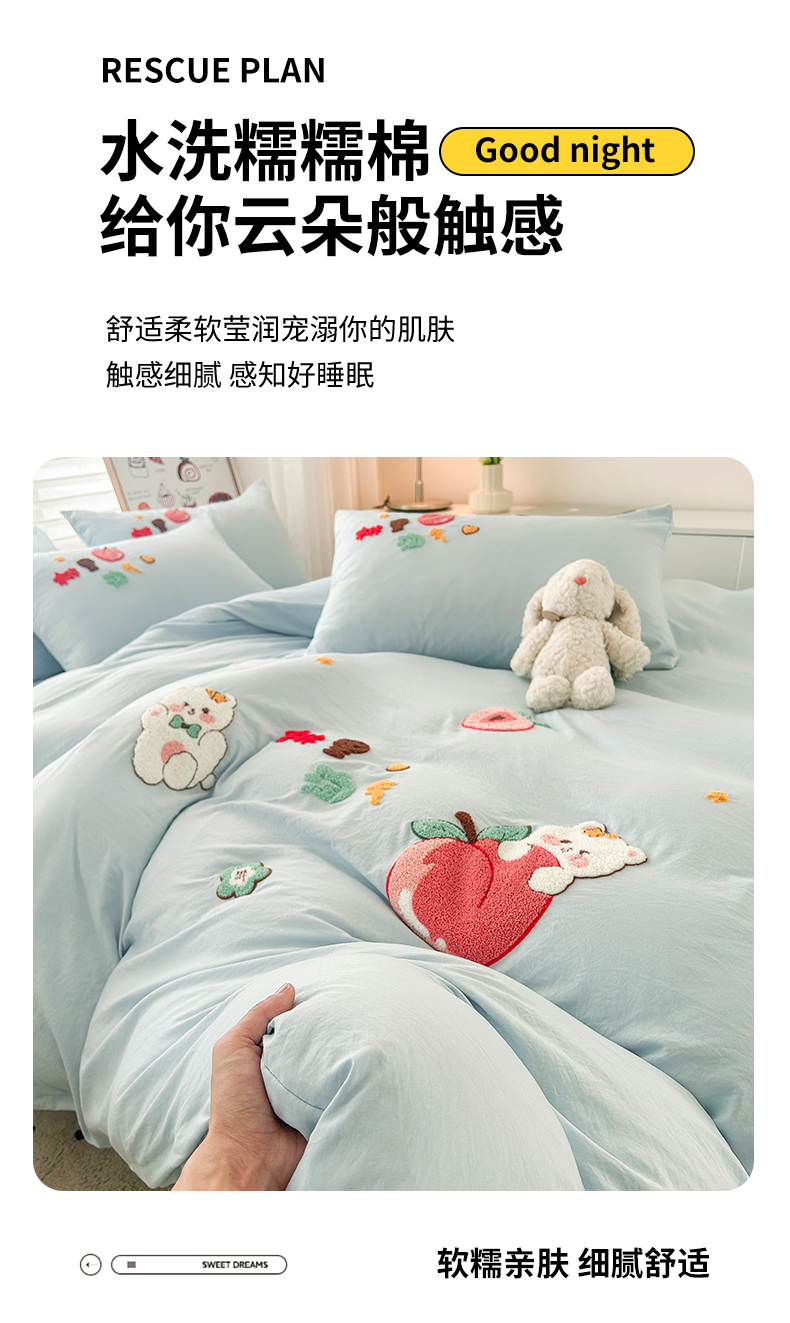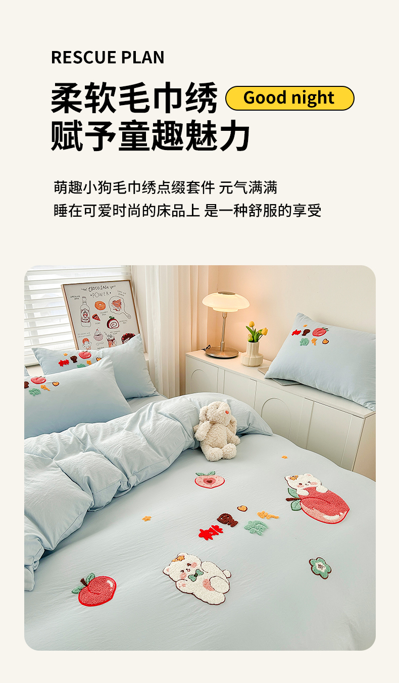(总)包小包 2025新款糯糯绵毛巾绣可爱卡通爆款四件套,顽皮狗-白绿,好朋友-奶咖,猫小桃-蓝,奶油兔-粉,顽皮狗-粉,顽皮狗-灰,顽皮狗-奶咖,顽皮狗-雾蓝,小熊猫-绿