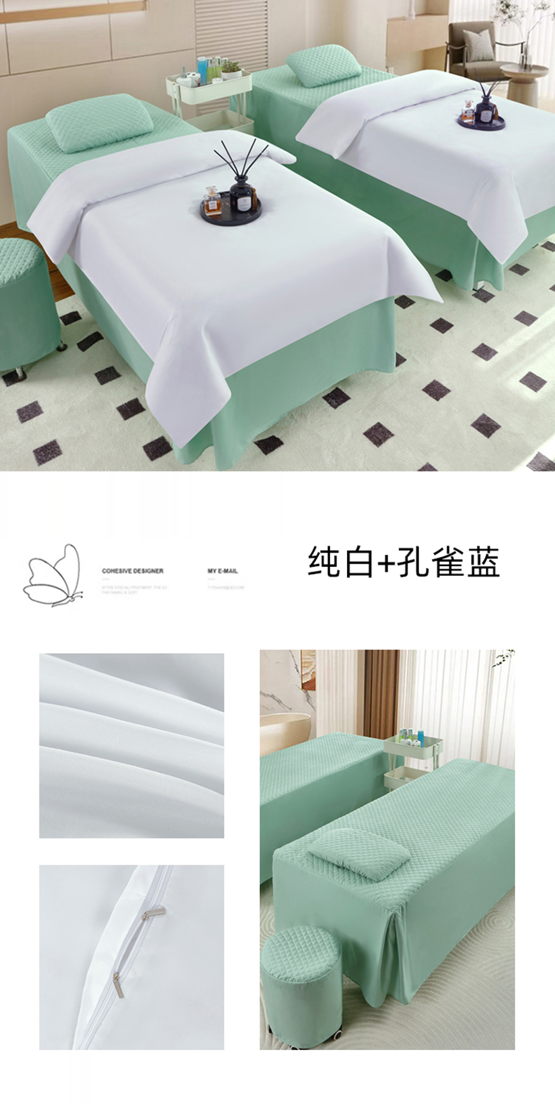 • 91家纺网 家纺一手货源 找家纺 乐逸家纺2025新款四季亲肤刺绣款床罩 纯白+孔雀蓝